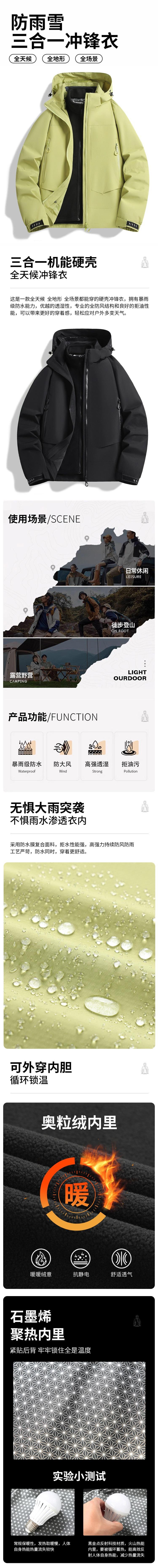 Conjunto de duas peças estilo casal de inverno para atividades ao ar livre com logotipo personalizado, jaqueta três em um com forro de grafeno, para viagem e escalada
