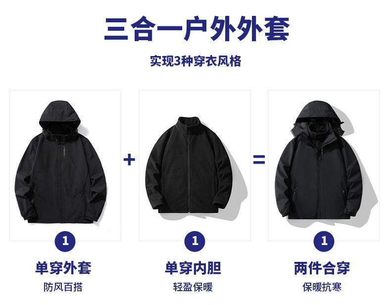 Conjunto masculino e feminino destacável três em um para atividades ao ar livre, primavera, outono e inverno, duas peças, terno de montanhismo, jaqueta corta-vento para caminhada