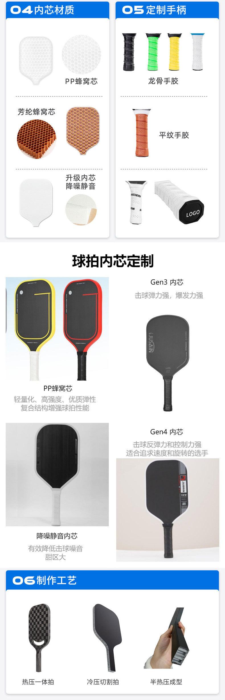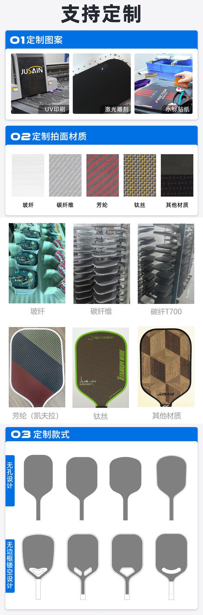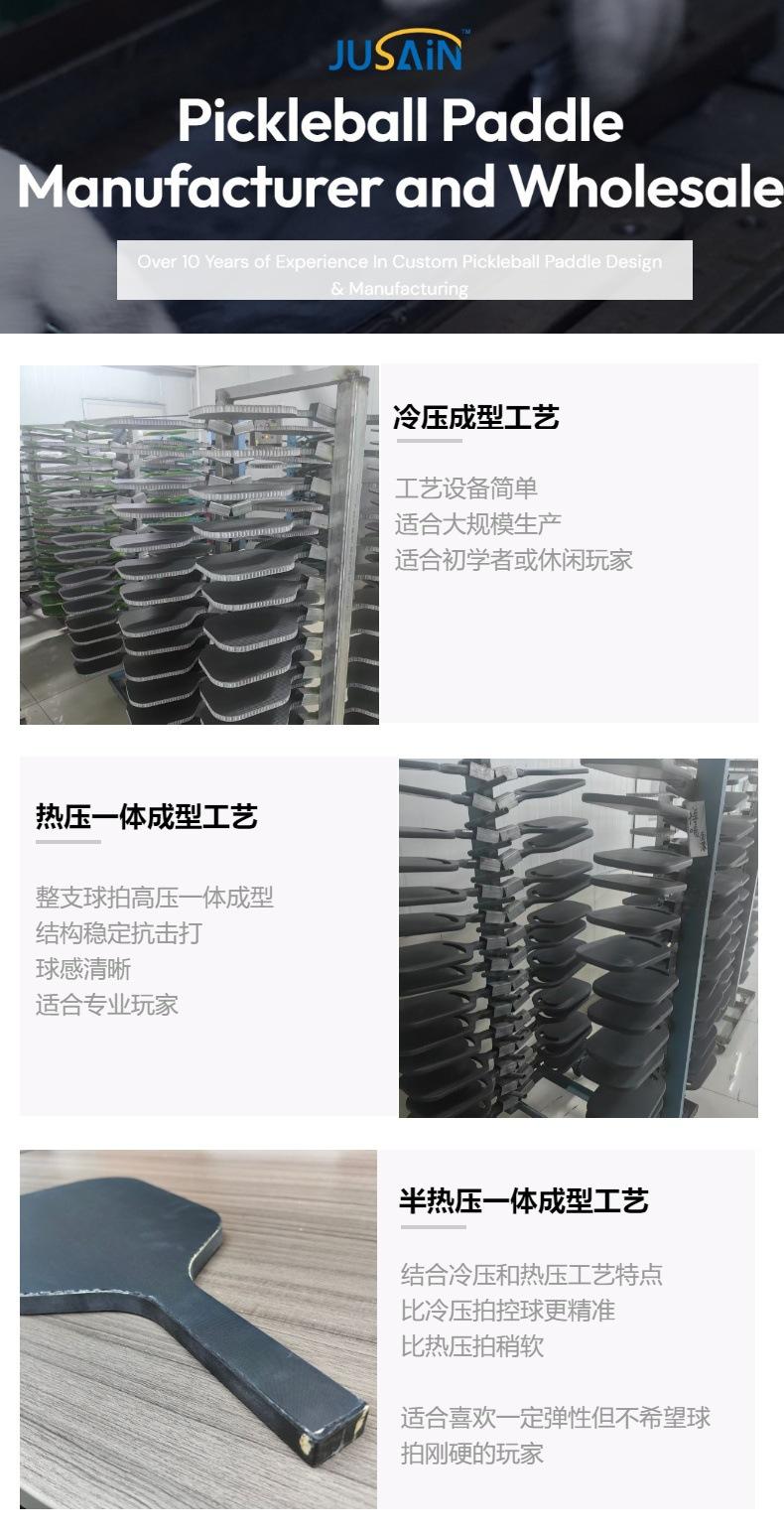 Raquete de Pickleball Popular de Fibra de Carbono de Peça Única da Amazon Raquete de Pickleball para Esportes ao Ar Livre com Núcleo Favo de Mel de PP Personalizado