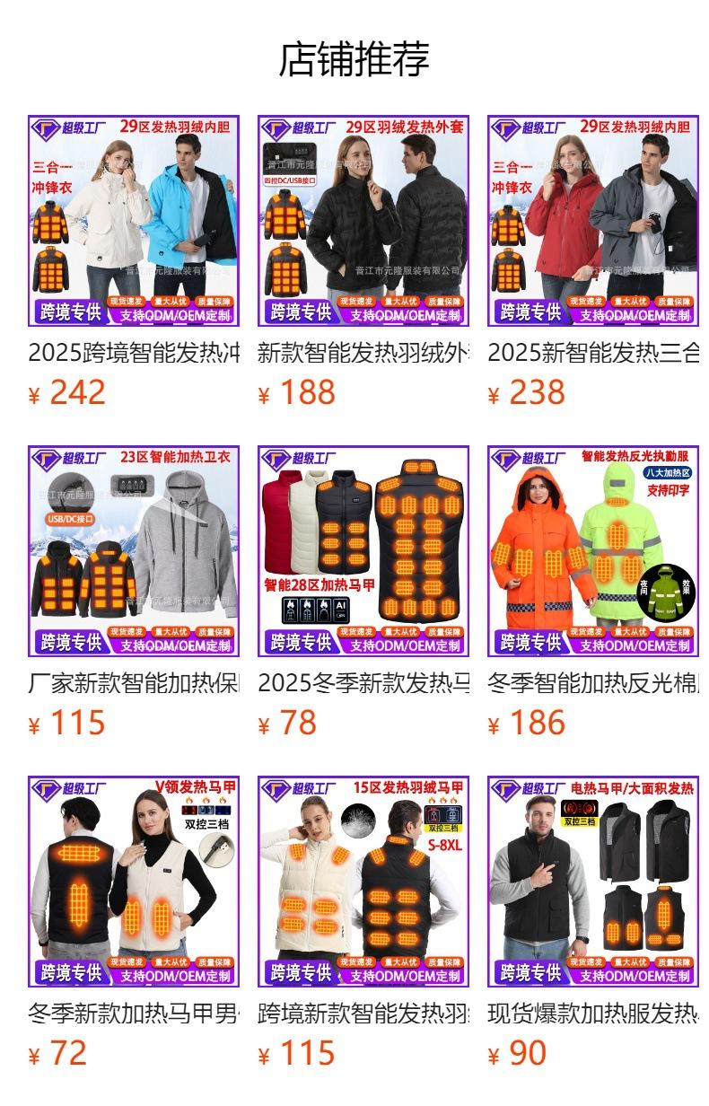 Jaqueta de Penas Aquecida Elétrica Inteligente de Temperatura Constante Transfronteiriça Três em Um Quente Acolchoada Aquecida Camada Interna Roupa de Aquecimento de Corpo Inteiro para Exterior Masculina