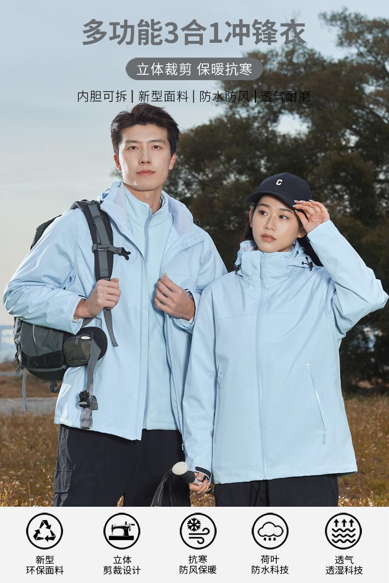 Jaqueta Três-Em-Um para Exterior para Homens e Mulheres, Conjunto de Duas Peças Removível, Corta-vento, Impermeável, Quente e Espesso, Roupa de Trabalho