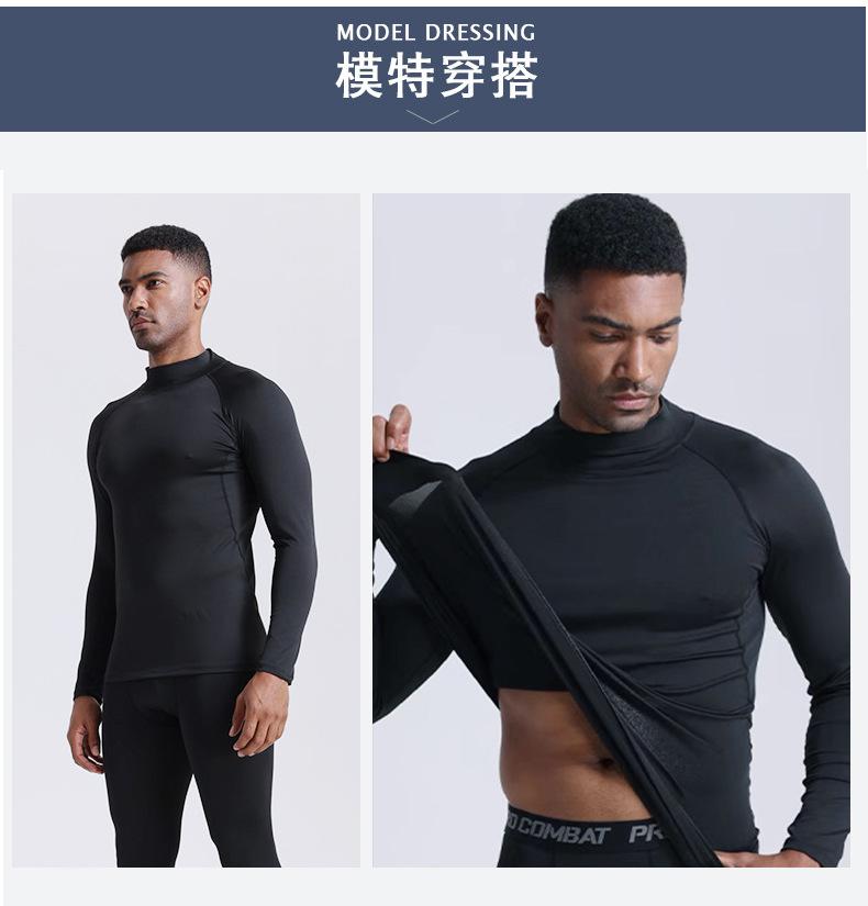 Roupa de Treino para Corrida ao Ar Livre Camada Base Roupa Íntima Quente Masculina Forrada com Lã Espessada Compressão Secagem Rápida Roupa Esportiva Manga Longa Roupa de Fitness