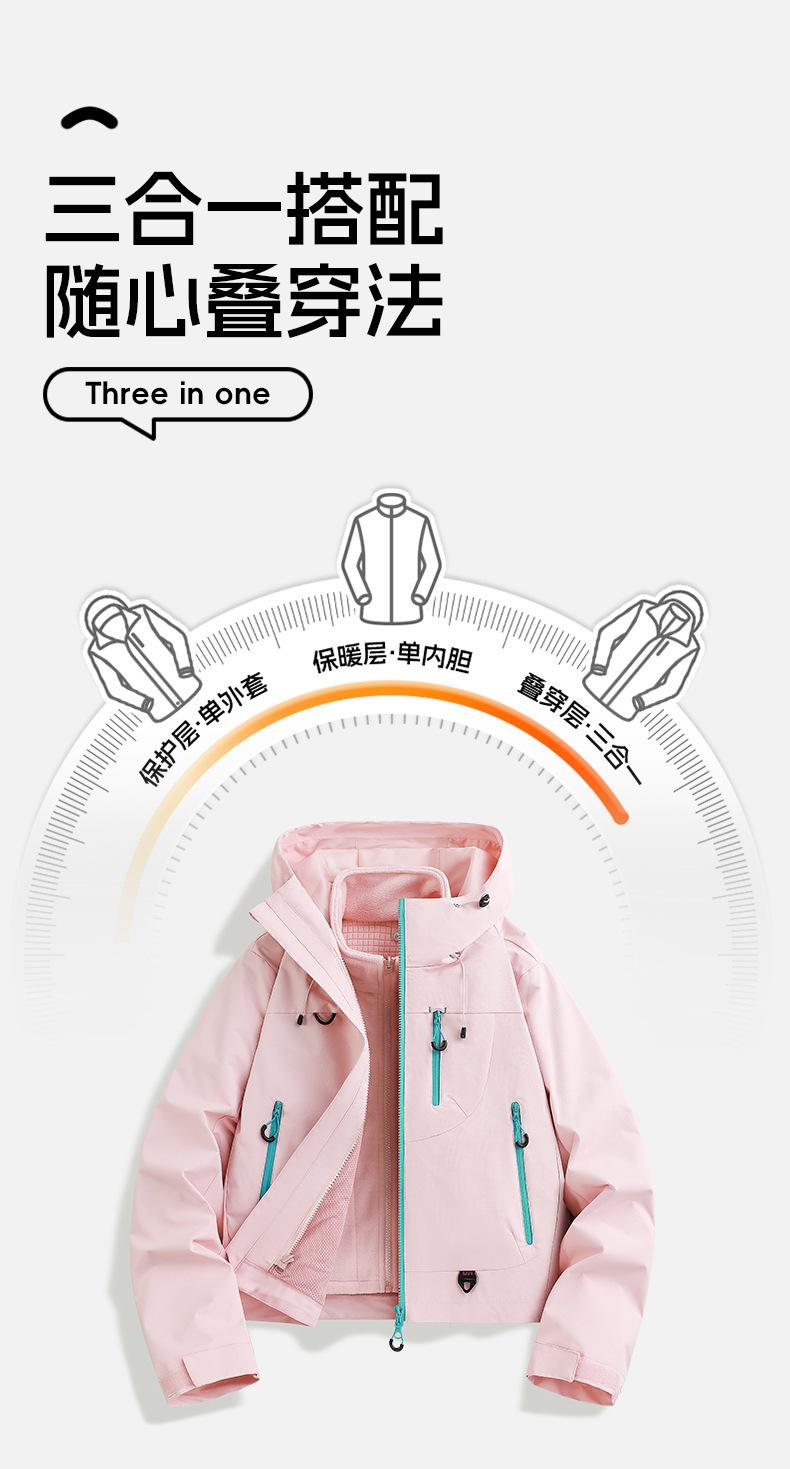 Jaqueta 3 em 1 Feminina para Exterior Woodpecker 2025 Novo Estilo À Prova de Vento Impermeável Tamanho Petite Roupa para Viagem Montanhismo