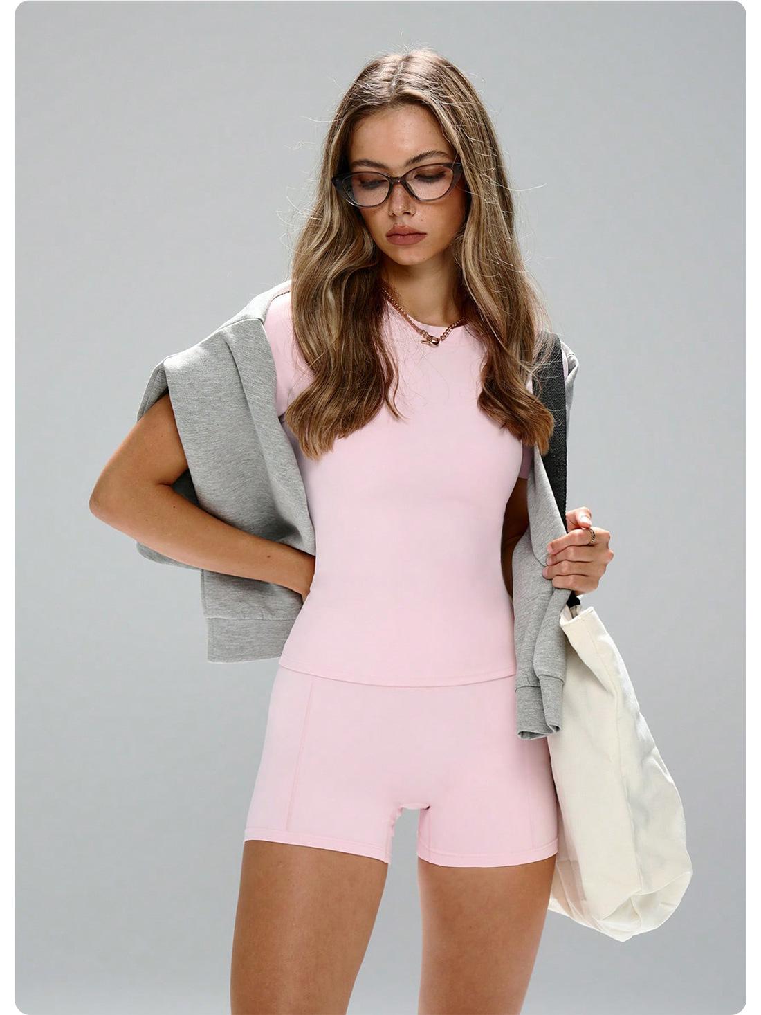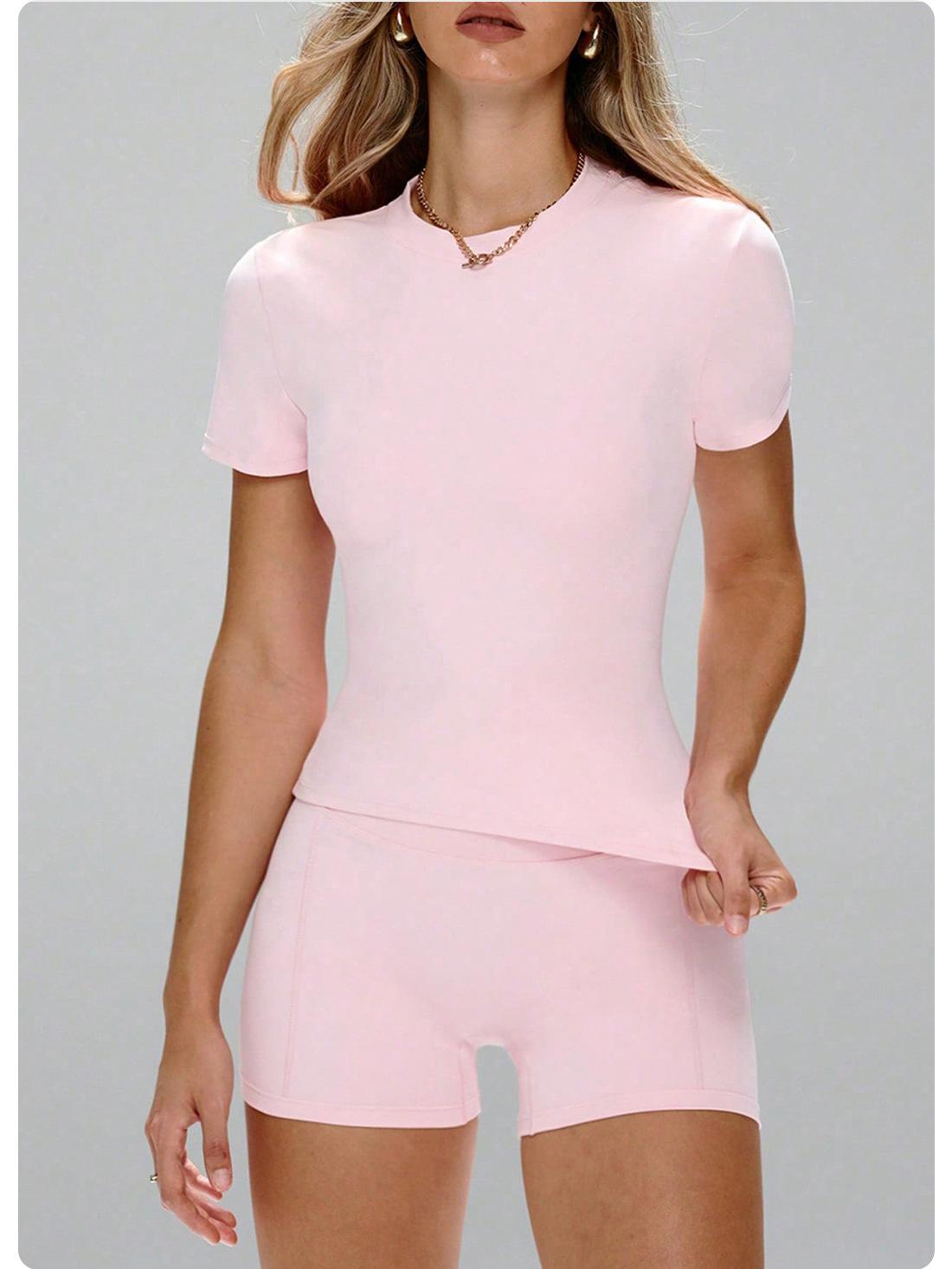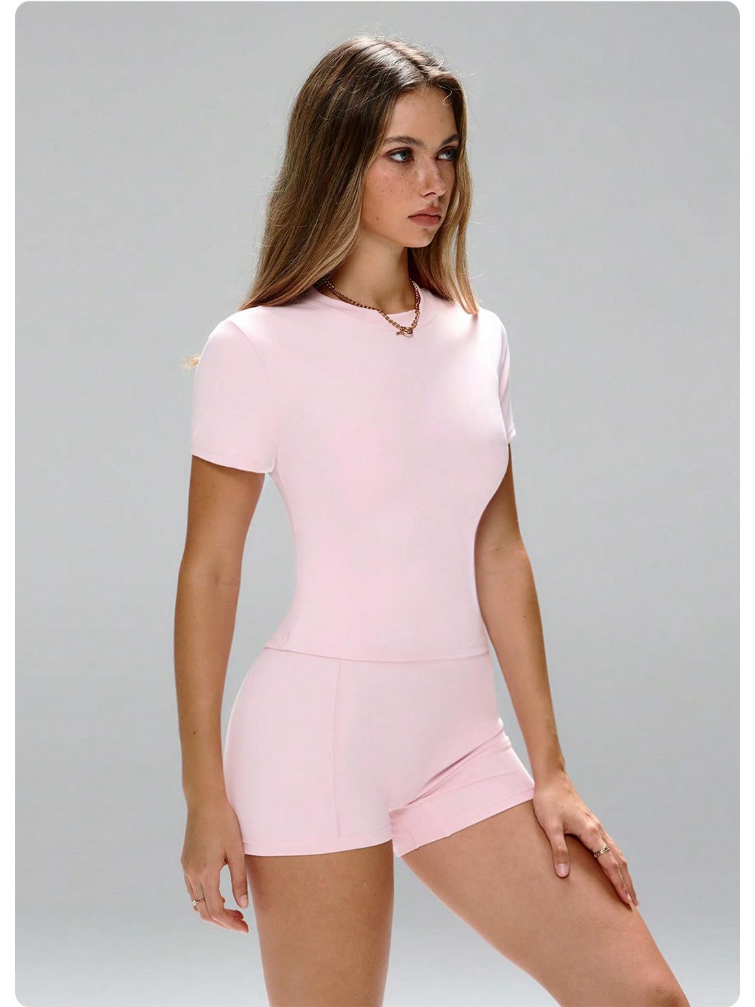 Pink short-sleeved shorts