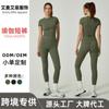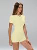 Novo conjunto de ioga europeu e americano transfronteiriço slim-fit de secagem rápida de manga curta de alta qualidade shorts de ioga esportivos ao ar livre