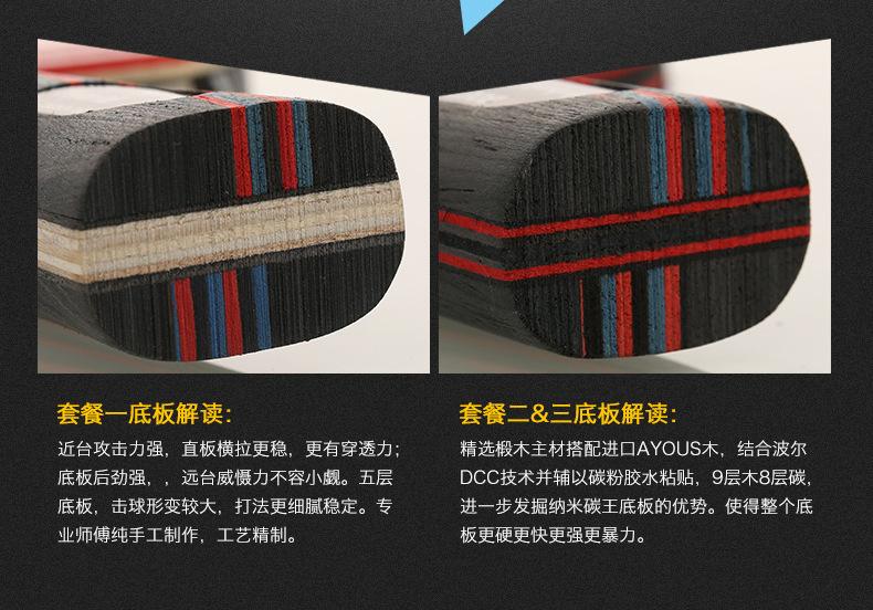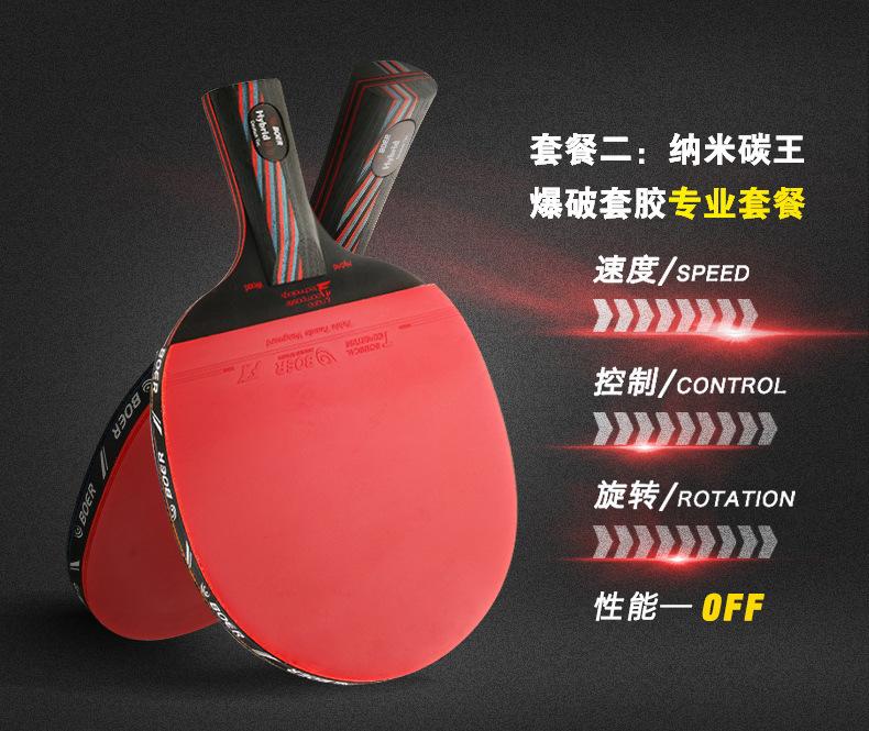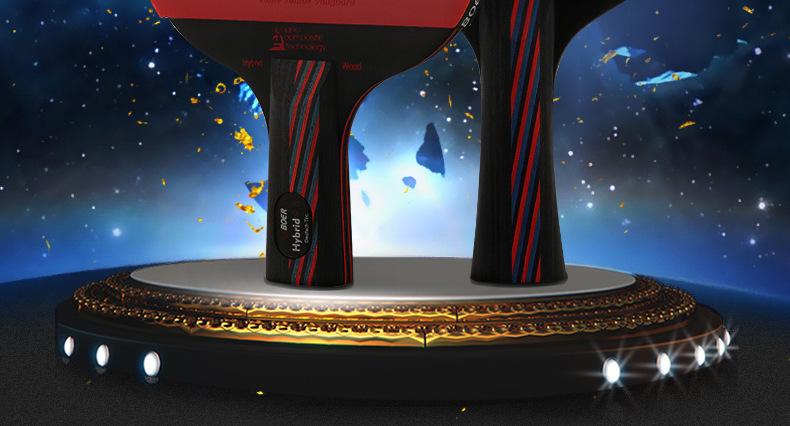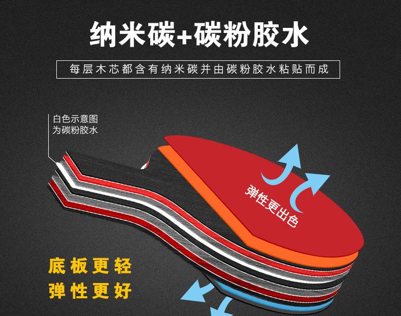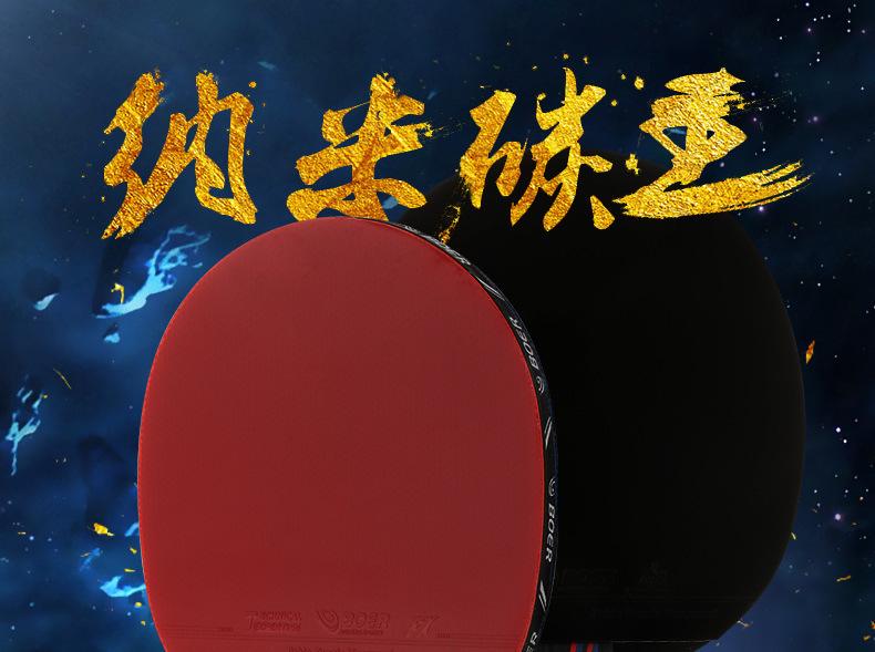 Raquete de tênis de mesa Boll nanoCarbono Rei 9.8, puramente artesanal, com placa de fundo profissional e cola profissional. Você está convidado a retirar amostras e experimentá-las.Rei do nano carbono,O produto é uma estrutura de madeira de carbono que mantém a sensação de madeira pura ao mesmo tempo que utiliza pó de carbono para aumentar a dureza e a elasticidade.Boa combinação de puxar e rebater, lançamento rápido da bola e giro forte.