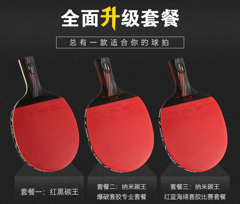 | Pacote Um: | Rei carbono vermelho e preto + raquete + 3 bolas + duas películas protetoras | 55 |