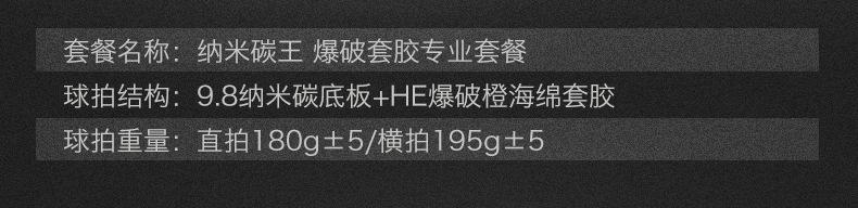 | Pacote Três: | Nano Carbon King atualizado + bolsa de última geração + 3 bolas + 2 películas protetoras | 110 |
