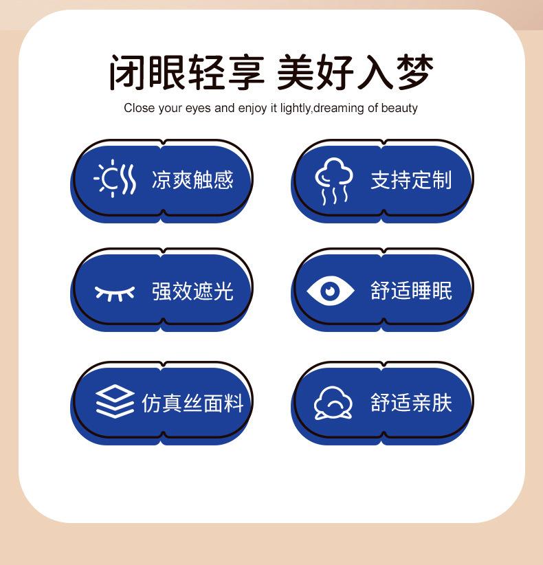Nova Máscara de Olhos Blackout de Cetim de Seda Sintética Dupla Face para Dormir Elástica Viagem Pausa para Almoço Estampada Aviação Atacado