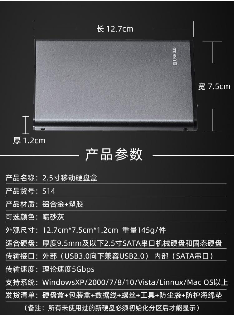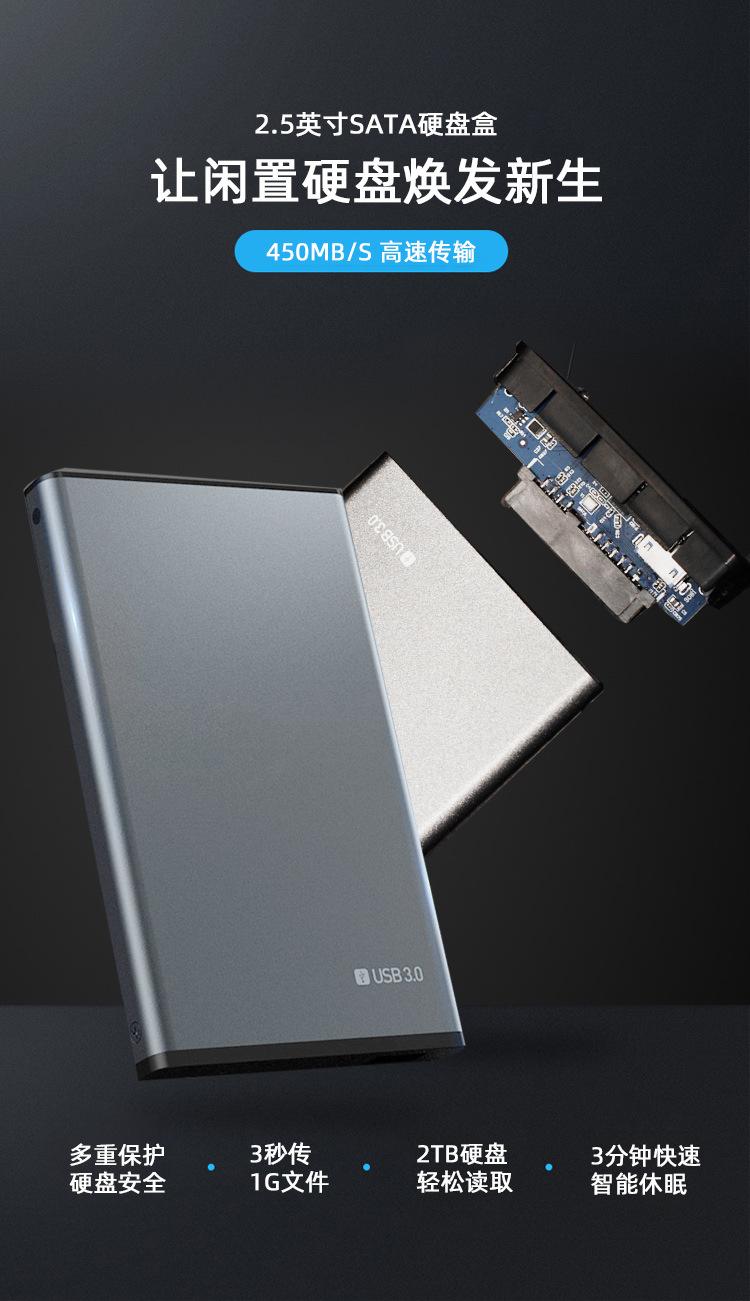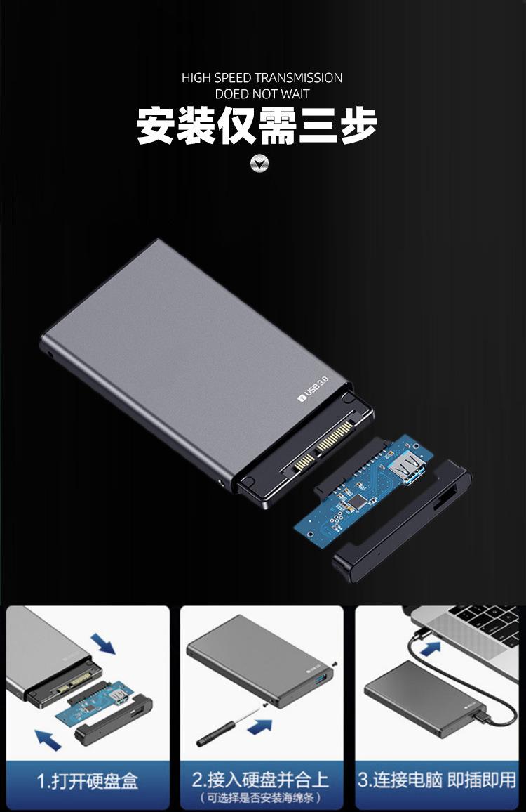 Gabinete para Disco Rígido Móvel 2,5 polegadas USB3.0 Cinza Metálico SSD Mecânico Estado Sólido Material Liga de Alumínio Portátil Sata