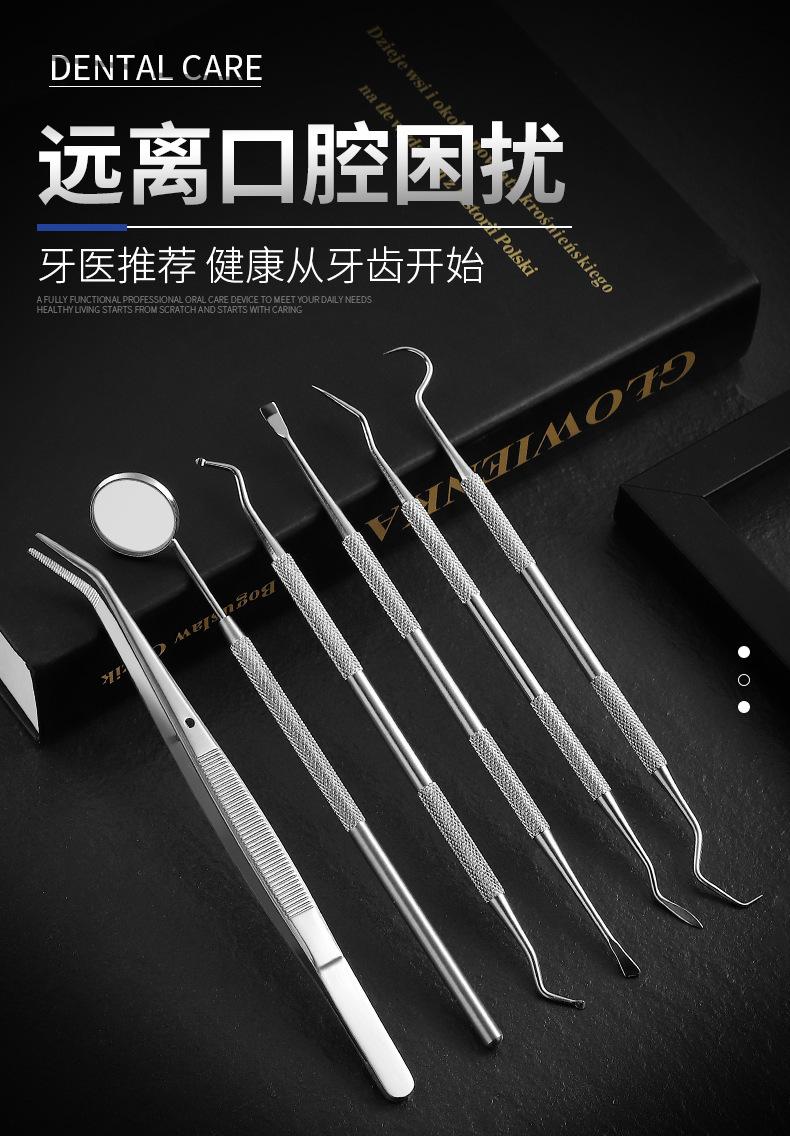 Tweezers, Anti-fog oral mirror, Corner probe, Hoe type tooth cleaner, Sickle tooth cleaner, Tooth stain remove...