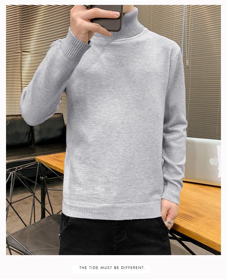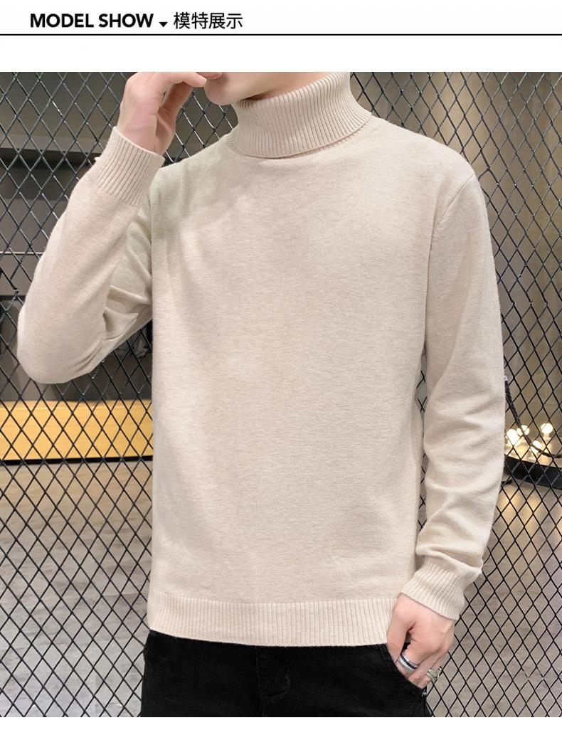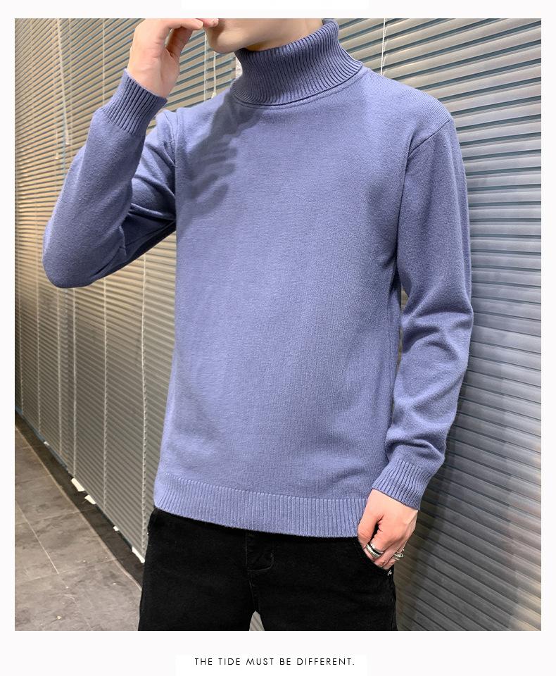 Suéter Gola Alta Cor Sólida Masculino Outono e Inverno Moda Coreana Base Elegante Espessado Tricotado Suéter Suéter Interno Roupas de Outono Roupas Masculinas