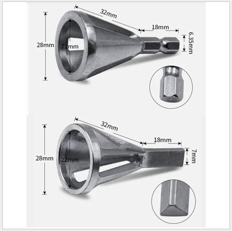 Nome do produto: Máquina de rebarbação e chanfradura Material: Cromo-Molibdênio-Vanádio Peso: 45g Embalagem: saco de opp 500 unidades/caixa Tamanho da caixa: 40/27/25CM Capacidade máxima de moagem: 20MM Faixa de tamanho: (4 mm-19 mm)
