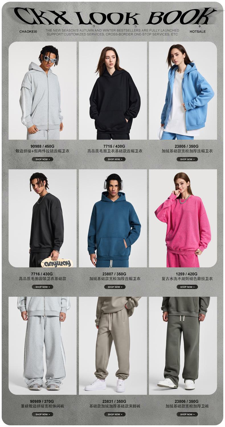 Moletom Terry Pesado Masculino CKX Outono/Inverno 430G Moletom Cor Sólida Moletom Terry Moderno Conjunto de Moletom Masculino/Feminino