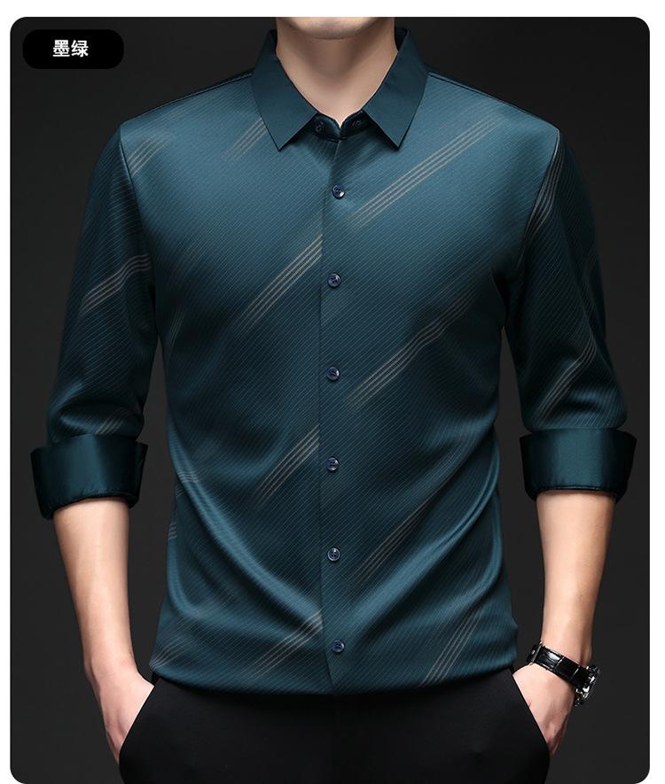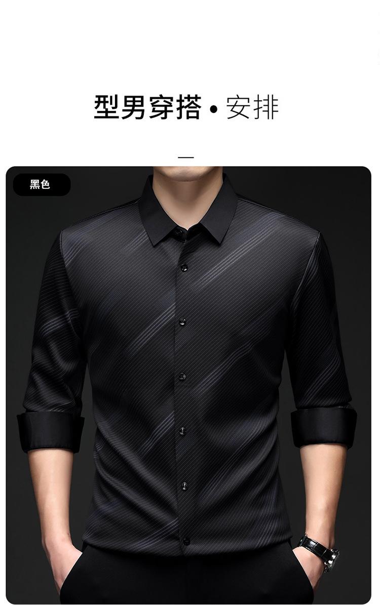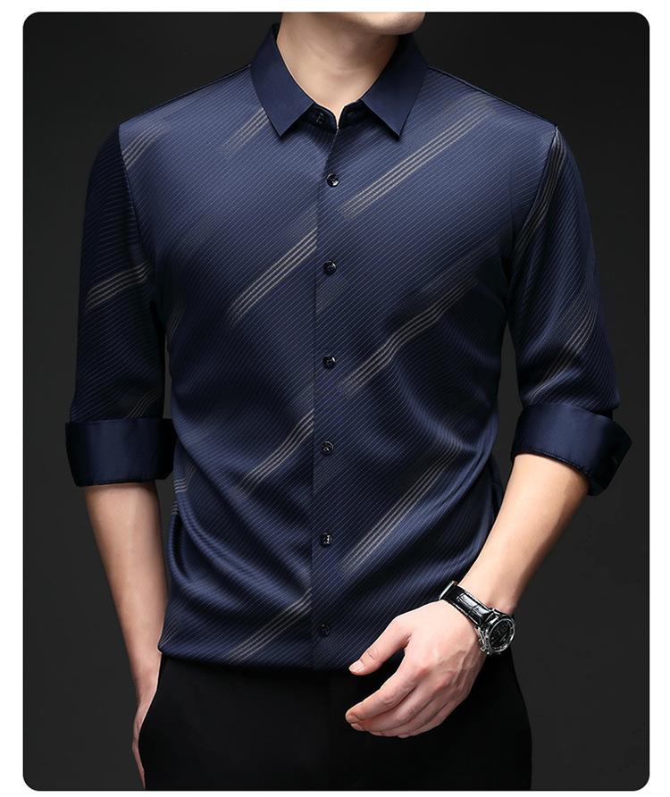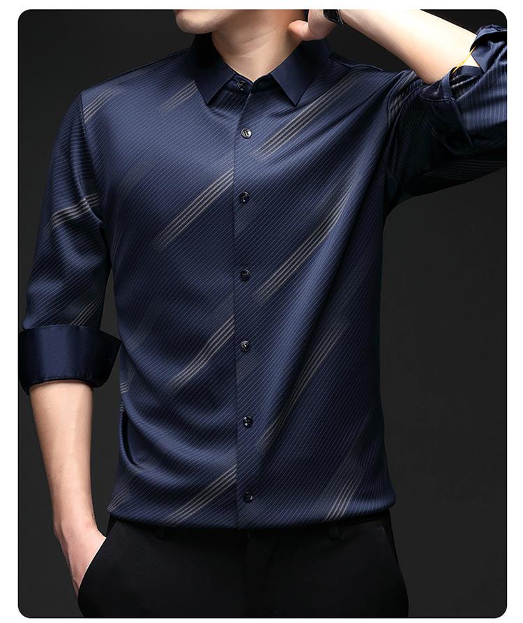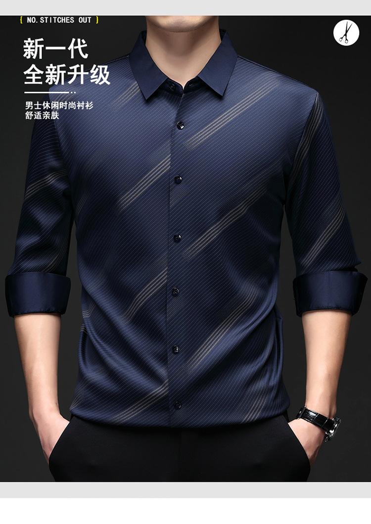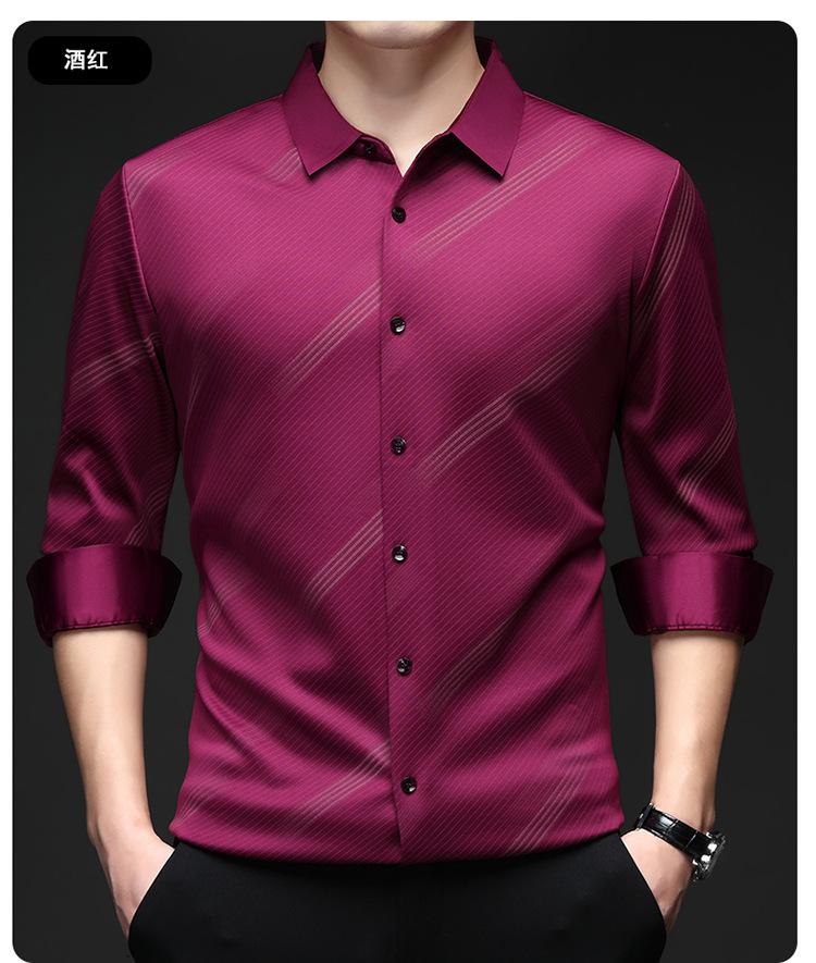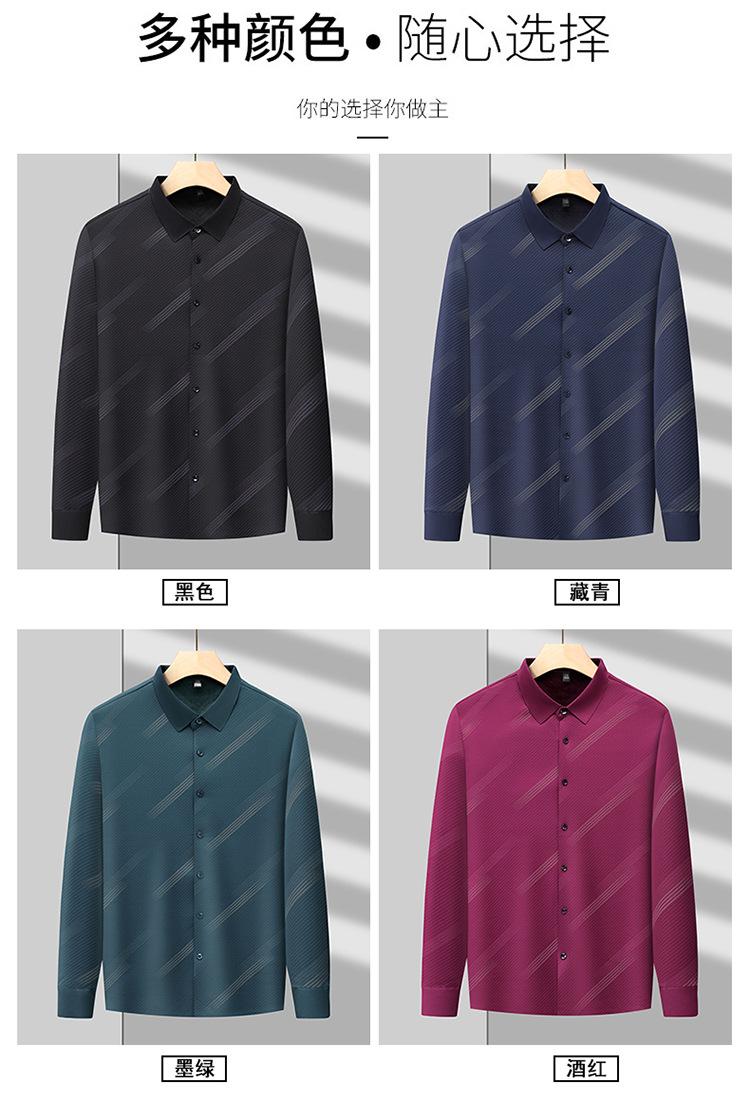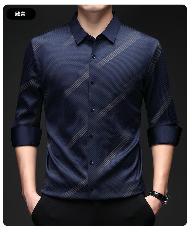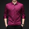Camisa Sem Costura de Seda de Amora Masculina Manga Longa Primavera e Outono Nova Business Casual Sem Passar Camisa Masculina de Meia Idade