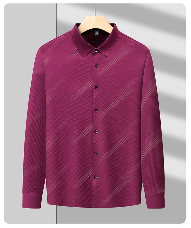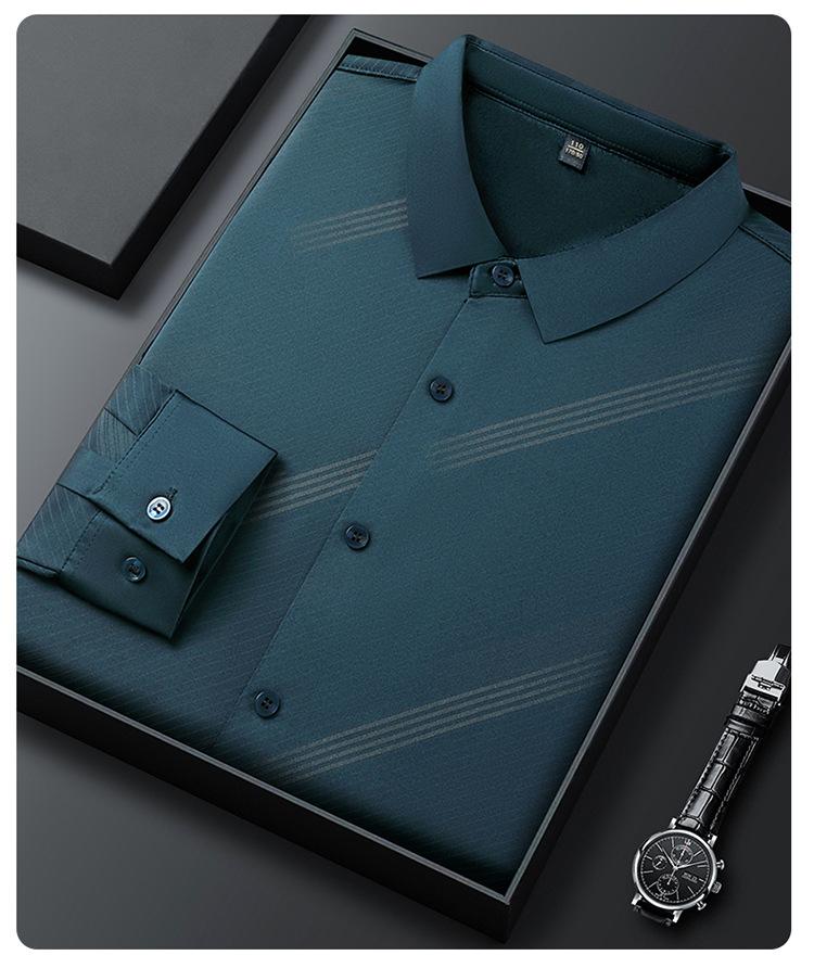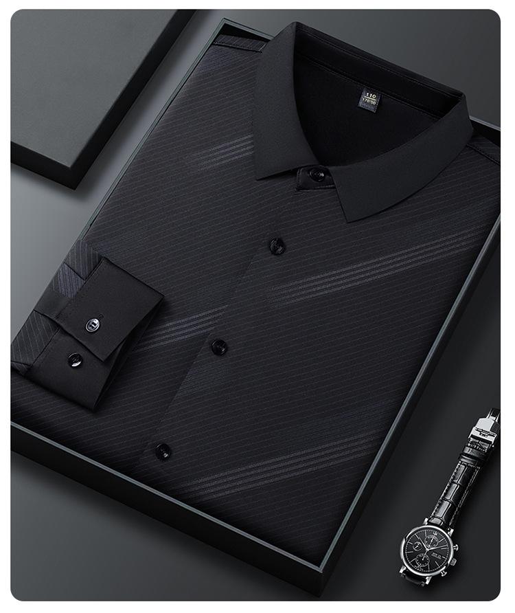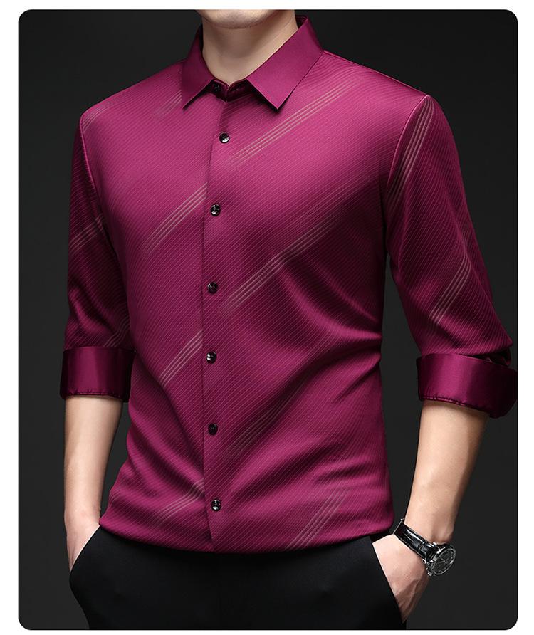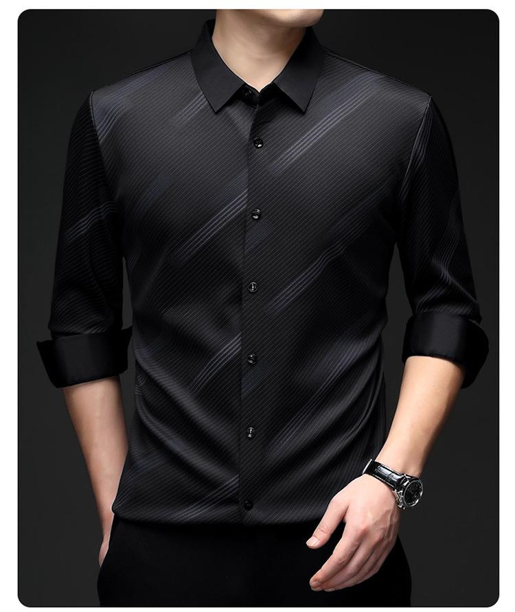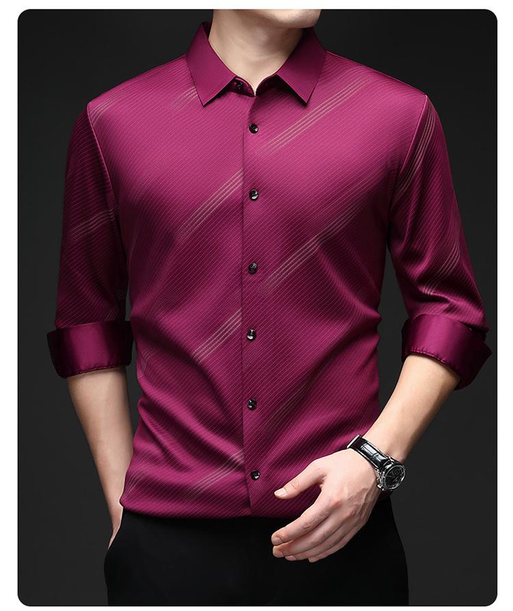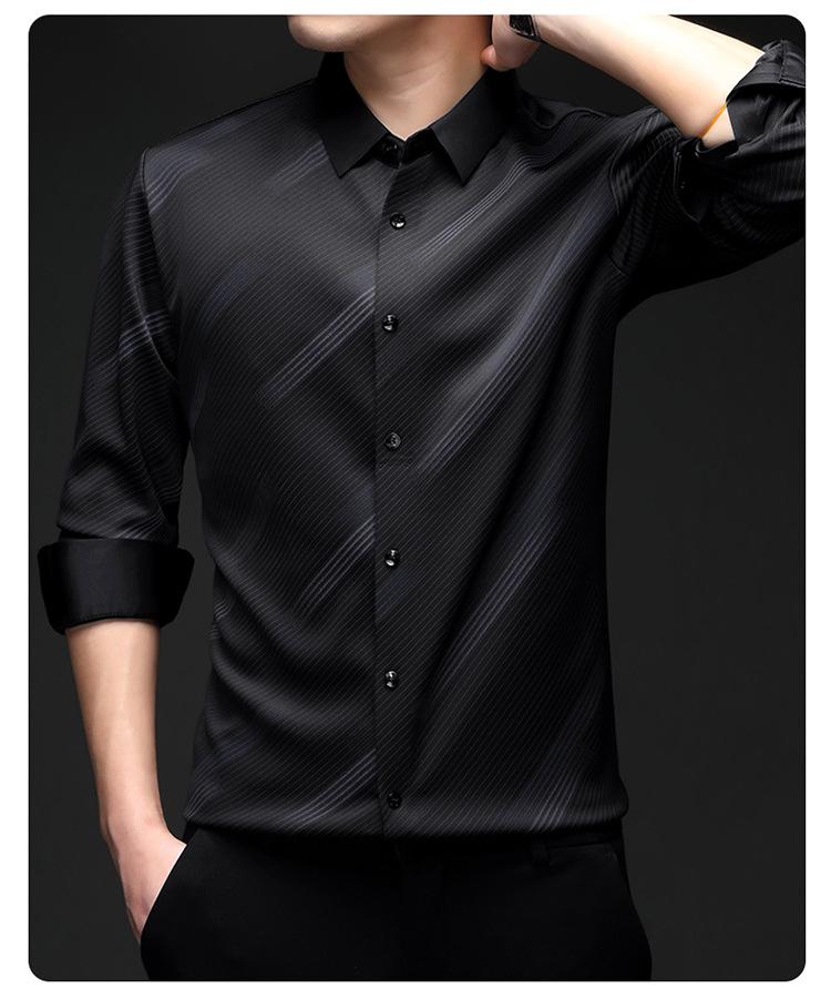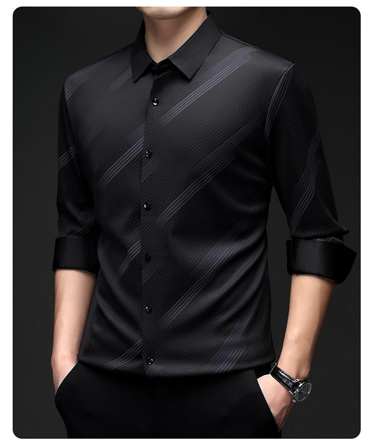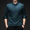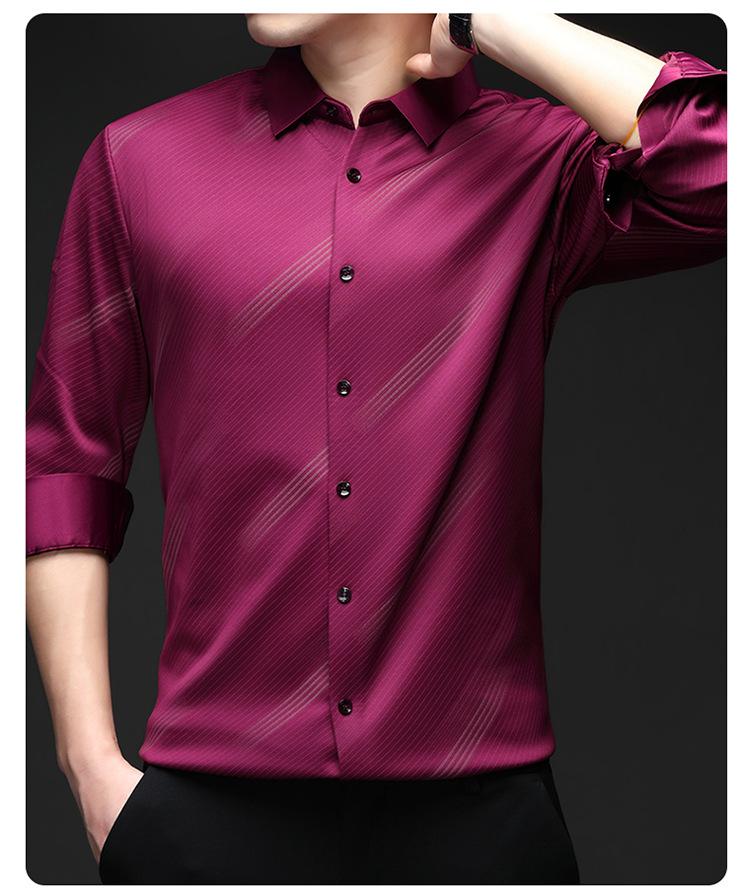 Camisa Sem Costura de Seda de Amora Masculina Manga Longa Primavera e Outono Nova Business Casual Sem Passar Camisa Masculina de Meia Idade