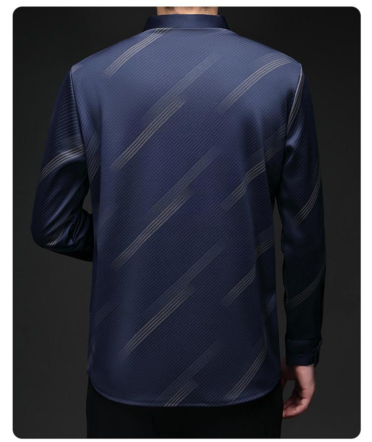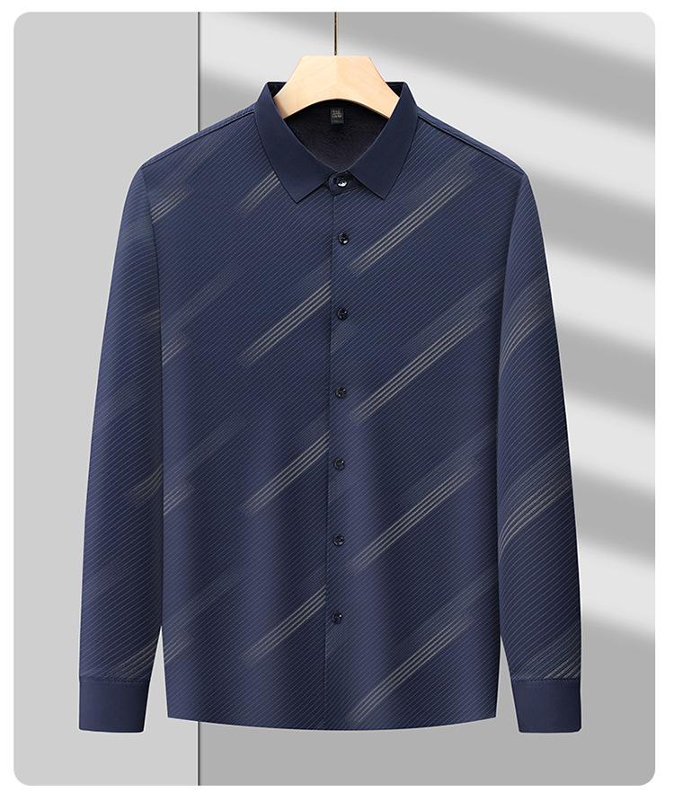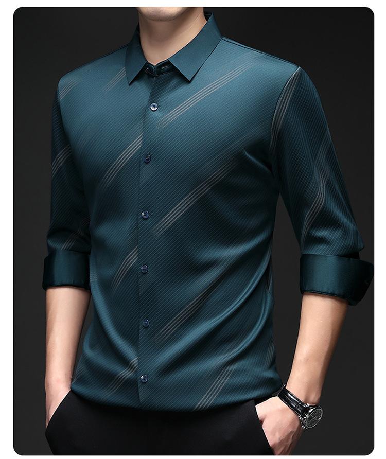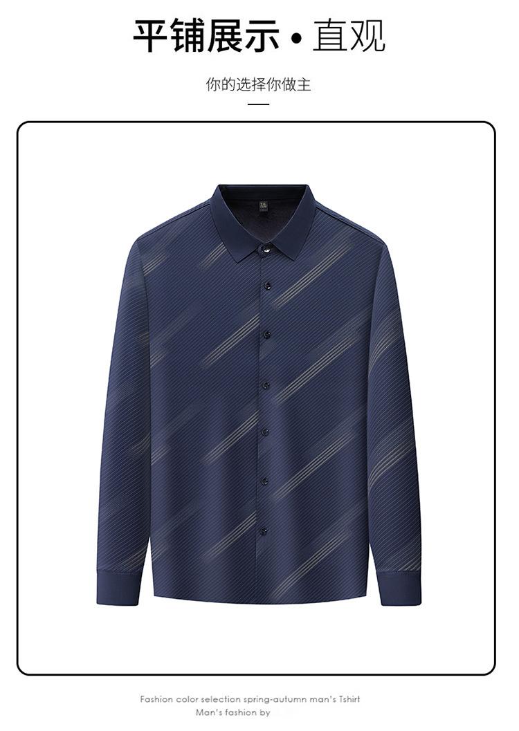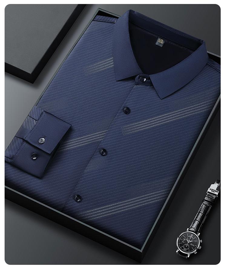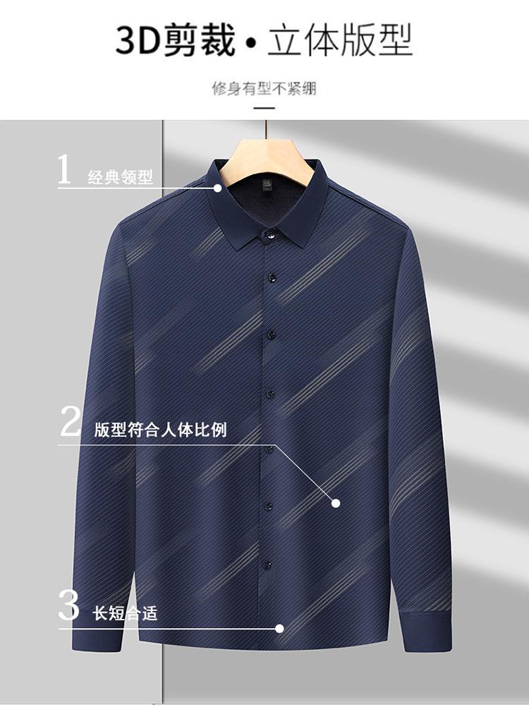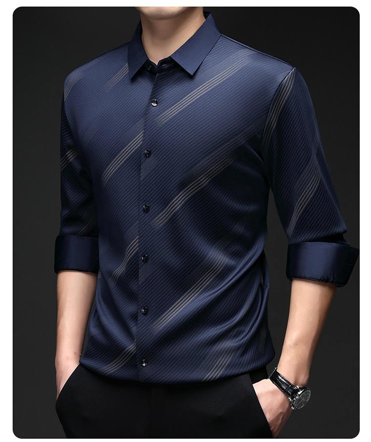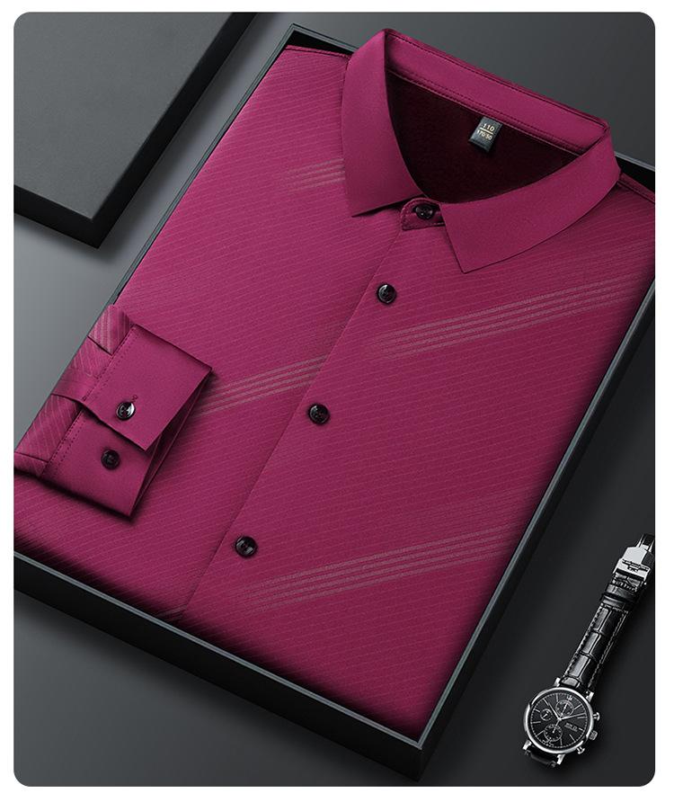 Camisa Sem Costura de Seda de Amora Masculina Manga Longa Primavera e Outono Nova Business Casual Sem Passar Camisa Masculina de Meia Idade