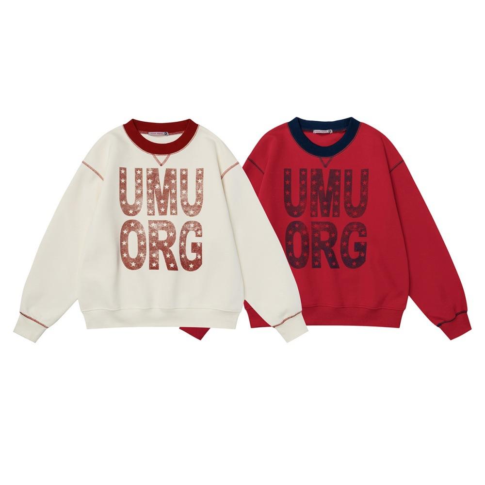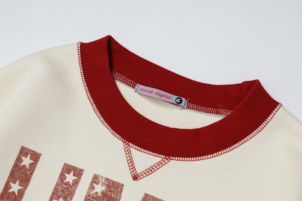 Moletom Streetwear com Estampa de Letra Americana Gola Careca Solto Masculino Primavera e Outono Vibe Marca de Tendência Americano Bloco de Cores Pulôver