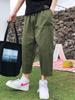 Calças Casuais de Verão Croppeds da Moda Estilo Hong Kong para Homens, Calças Harem Largas de Perna Reta da Moda, Patchwork Solto