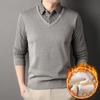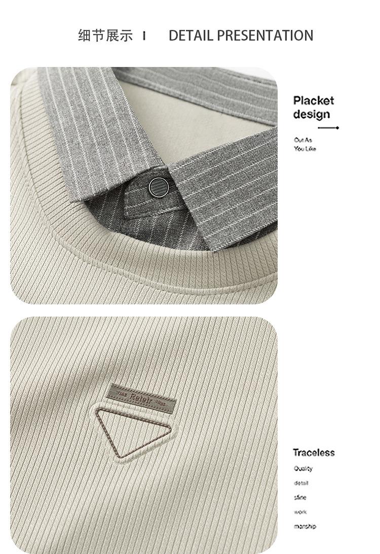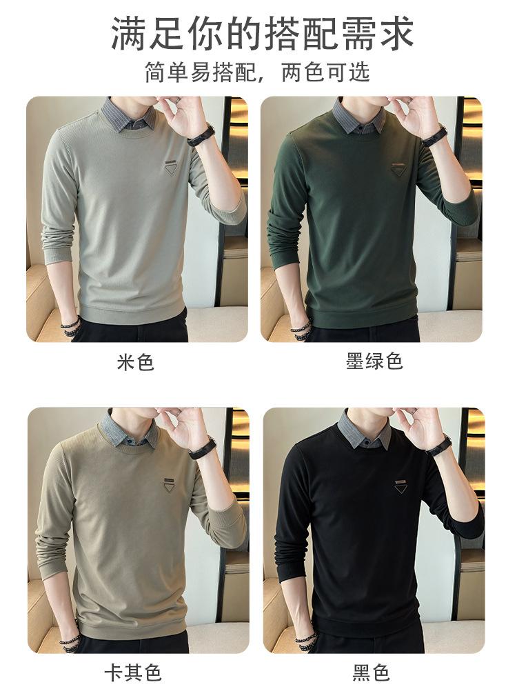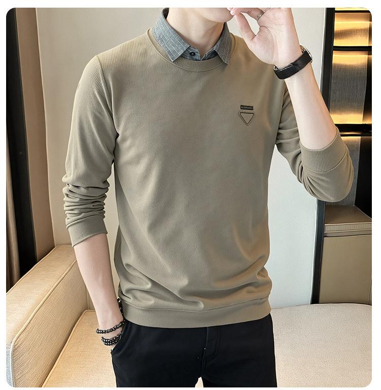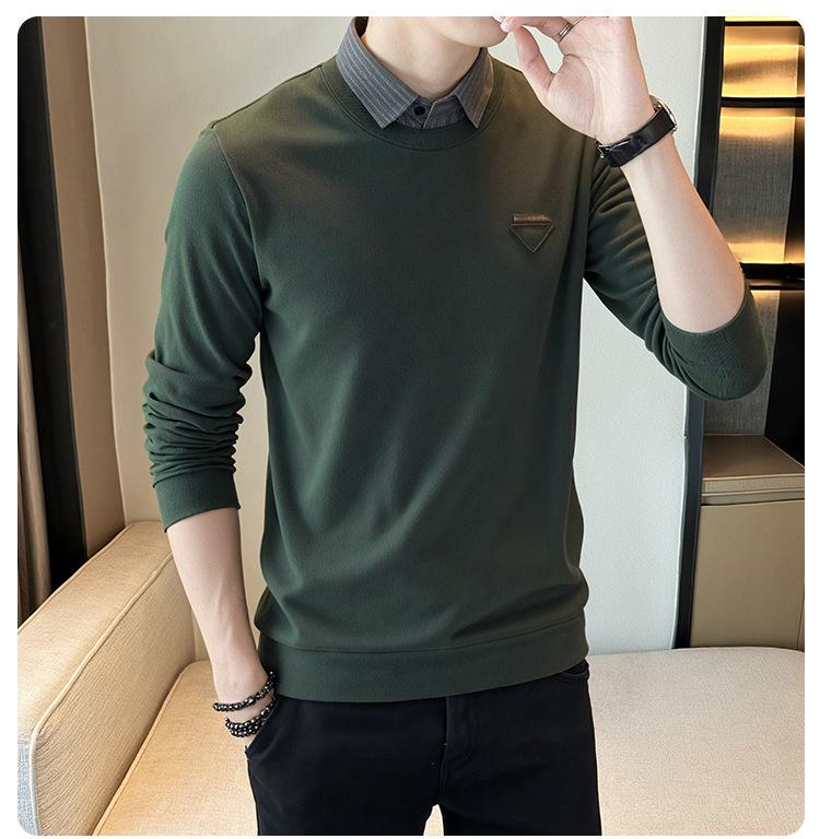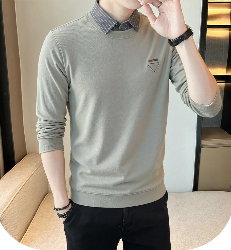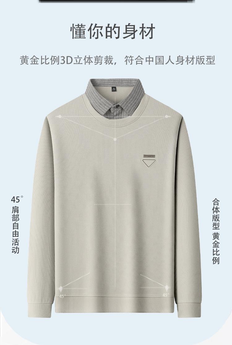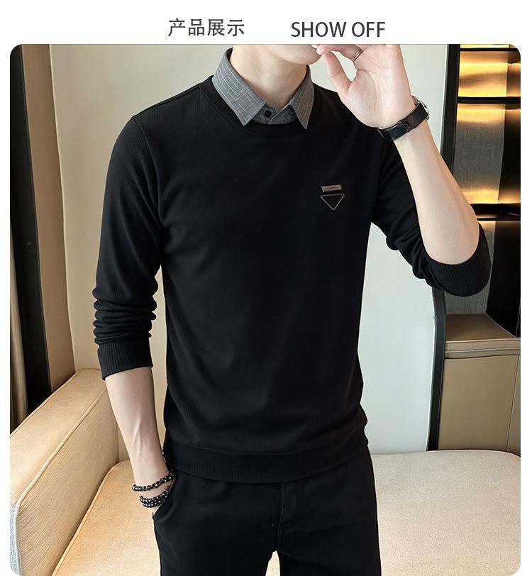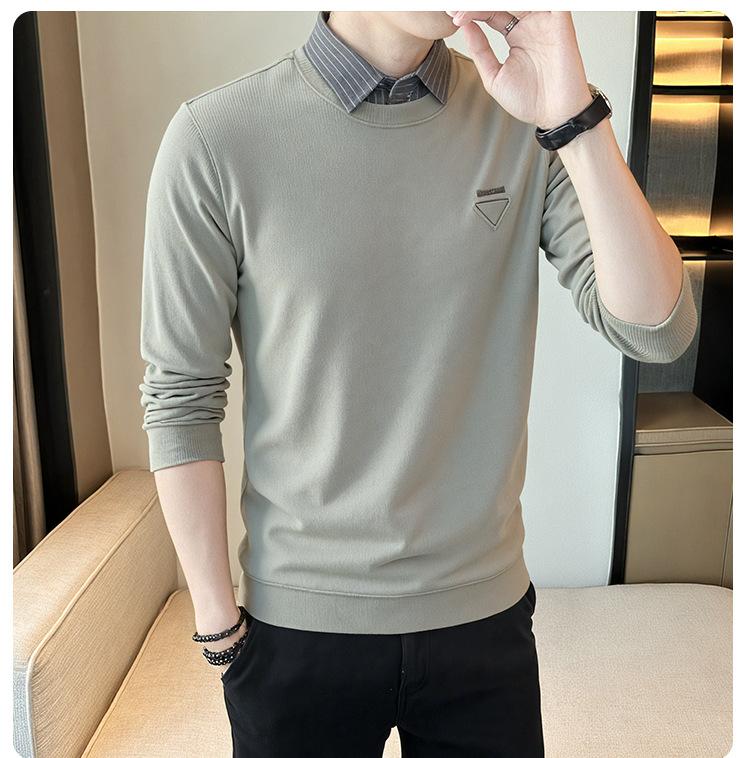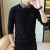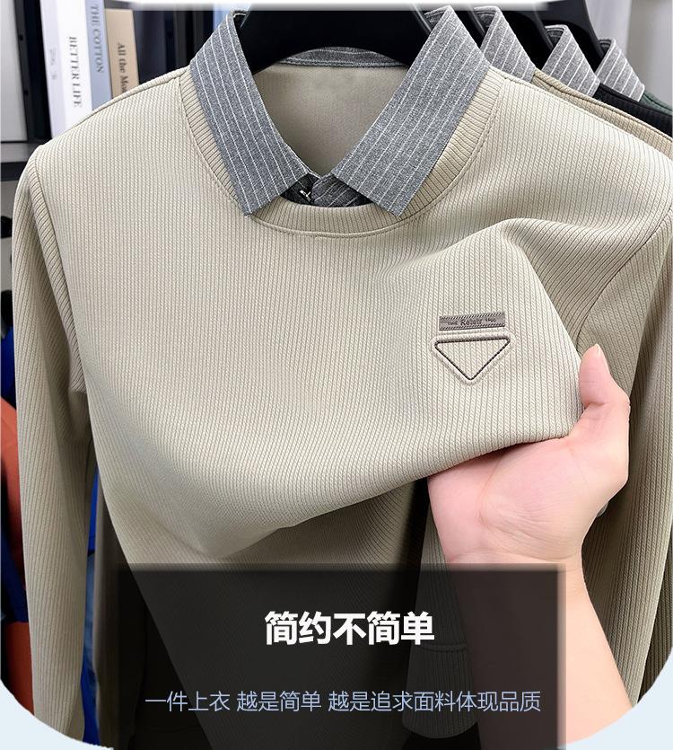 Moletom Outono Masculino Manga Longa Falso Duas Peças Colarinho Camisa Moda Top 2025 Novo Camiseta Camiseta Básica Roupa de Pai