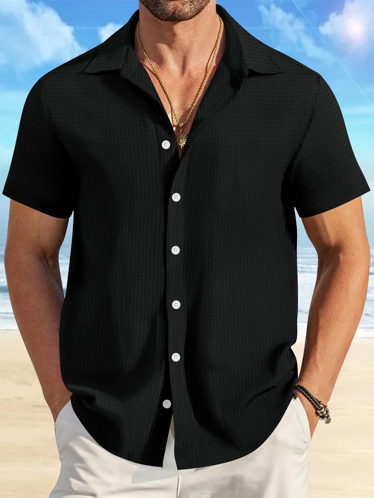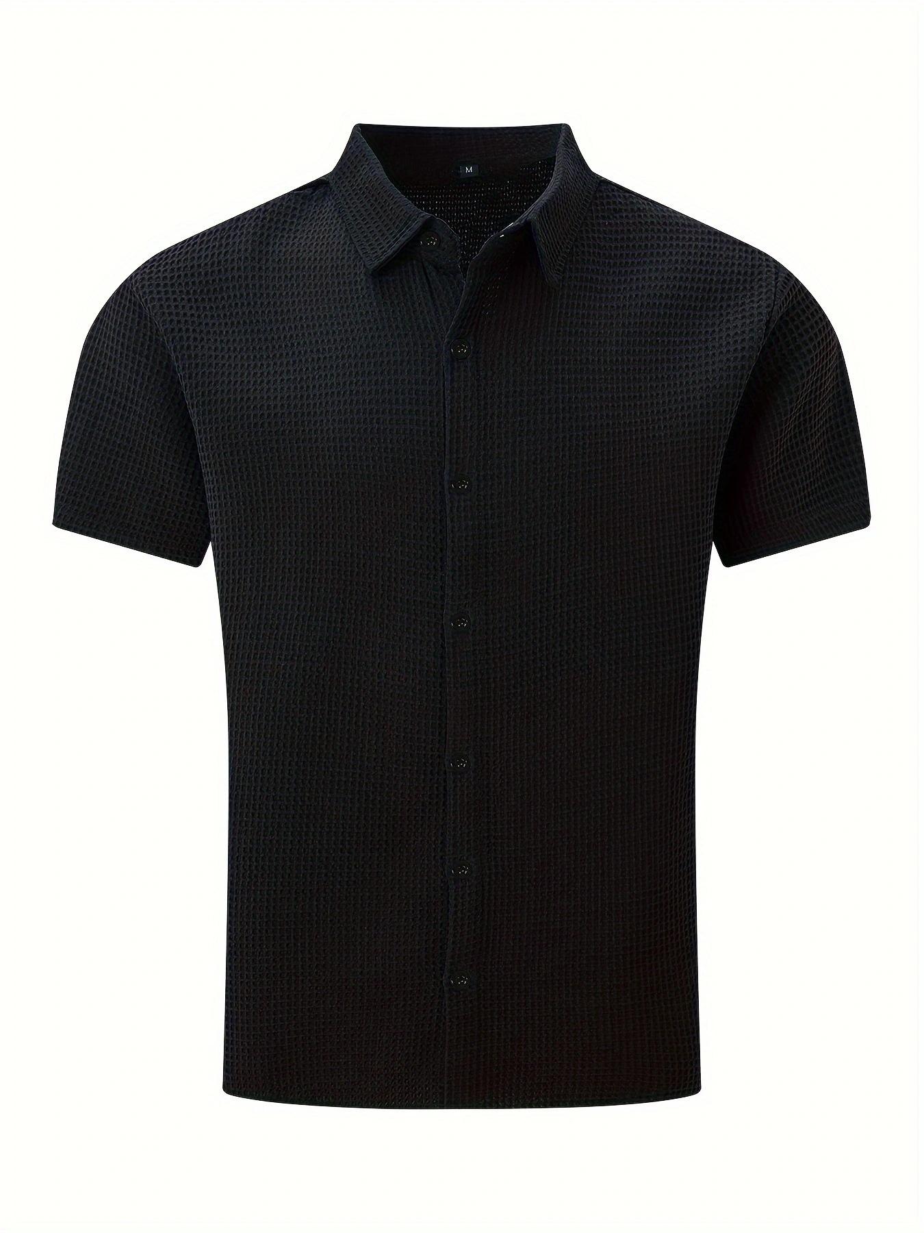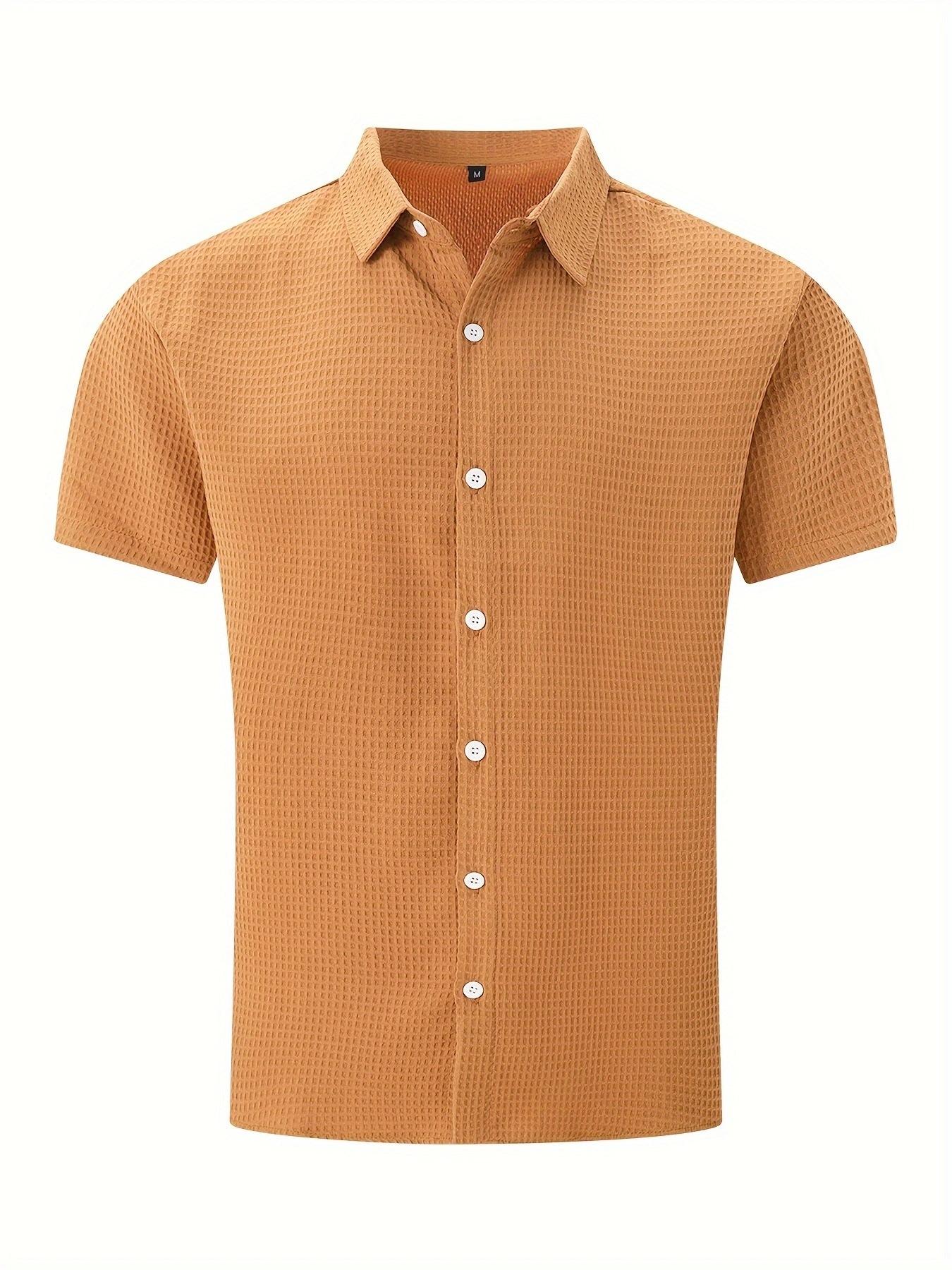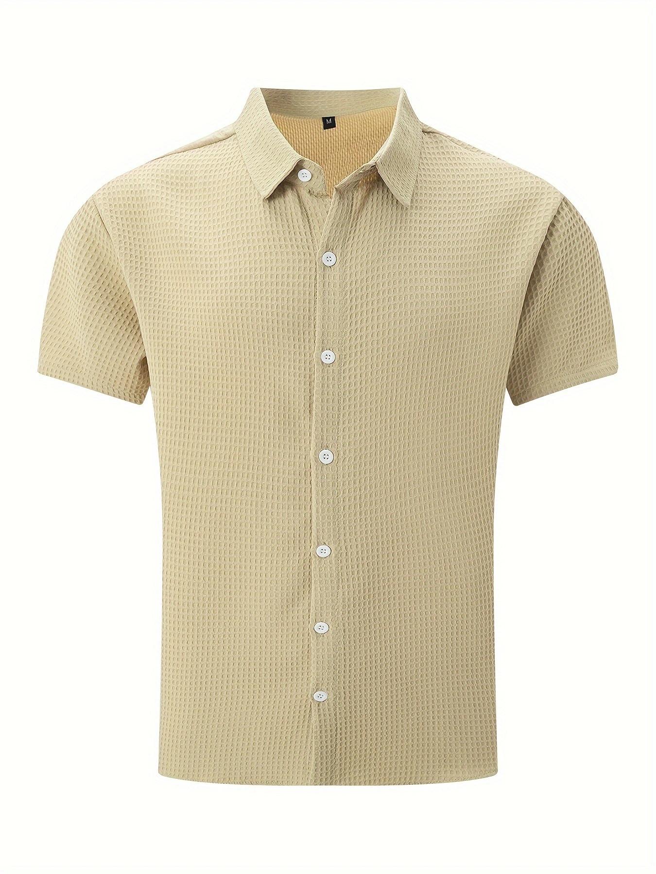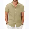 Camisas da Moda Transfronteiriça 2025 Camisas Masculinas de Verão Xadrez Jacquard Escritório Soltas Casuais de Manga Curta