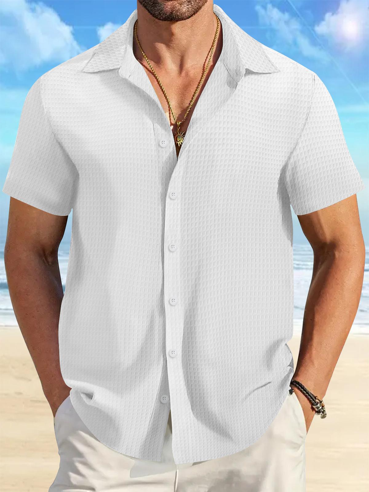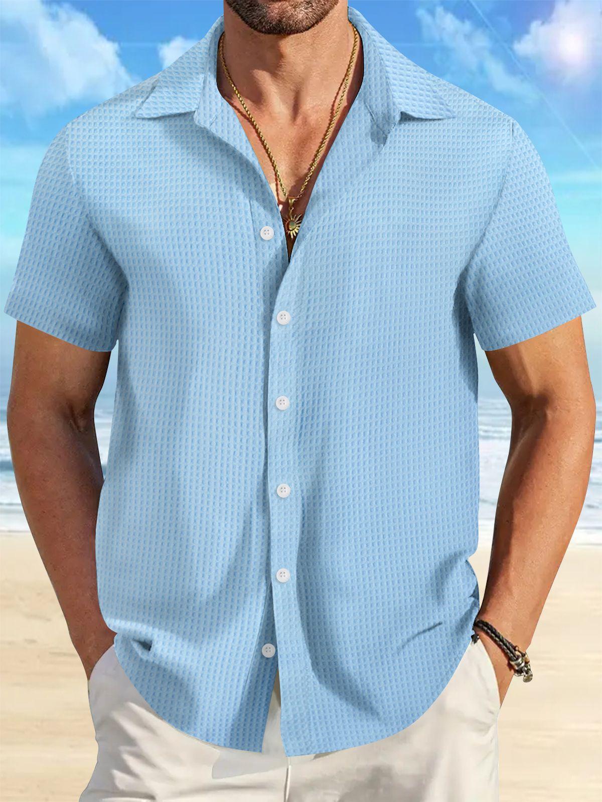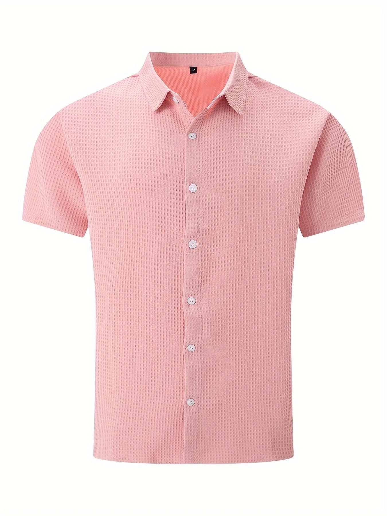 Camisas da Moda Transfronteiriça 2025 Camisas Masculinas de Verão Xadrez Jacquard Escritório Soltas Casuais de Manga Curta