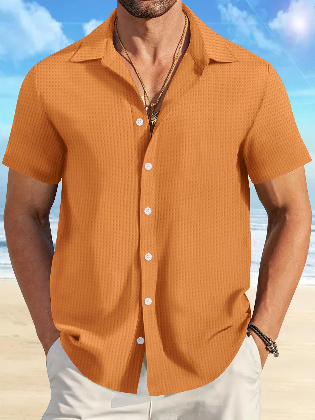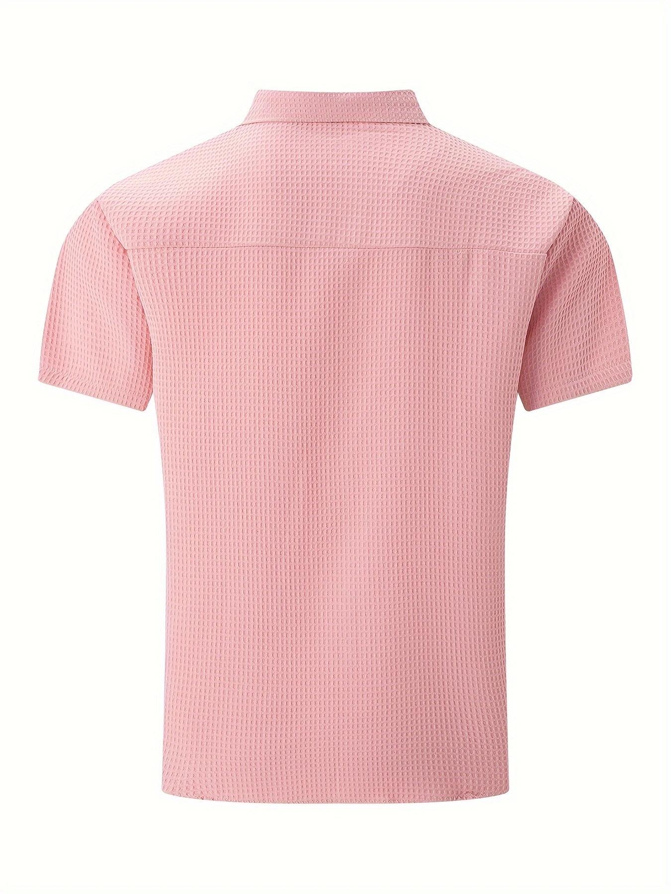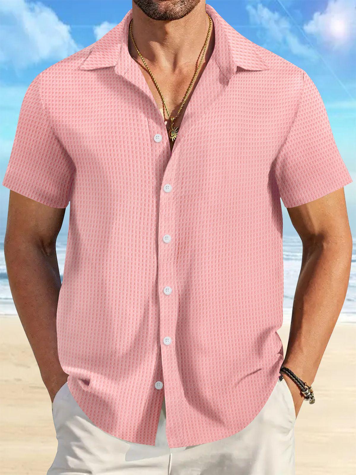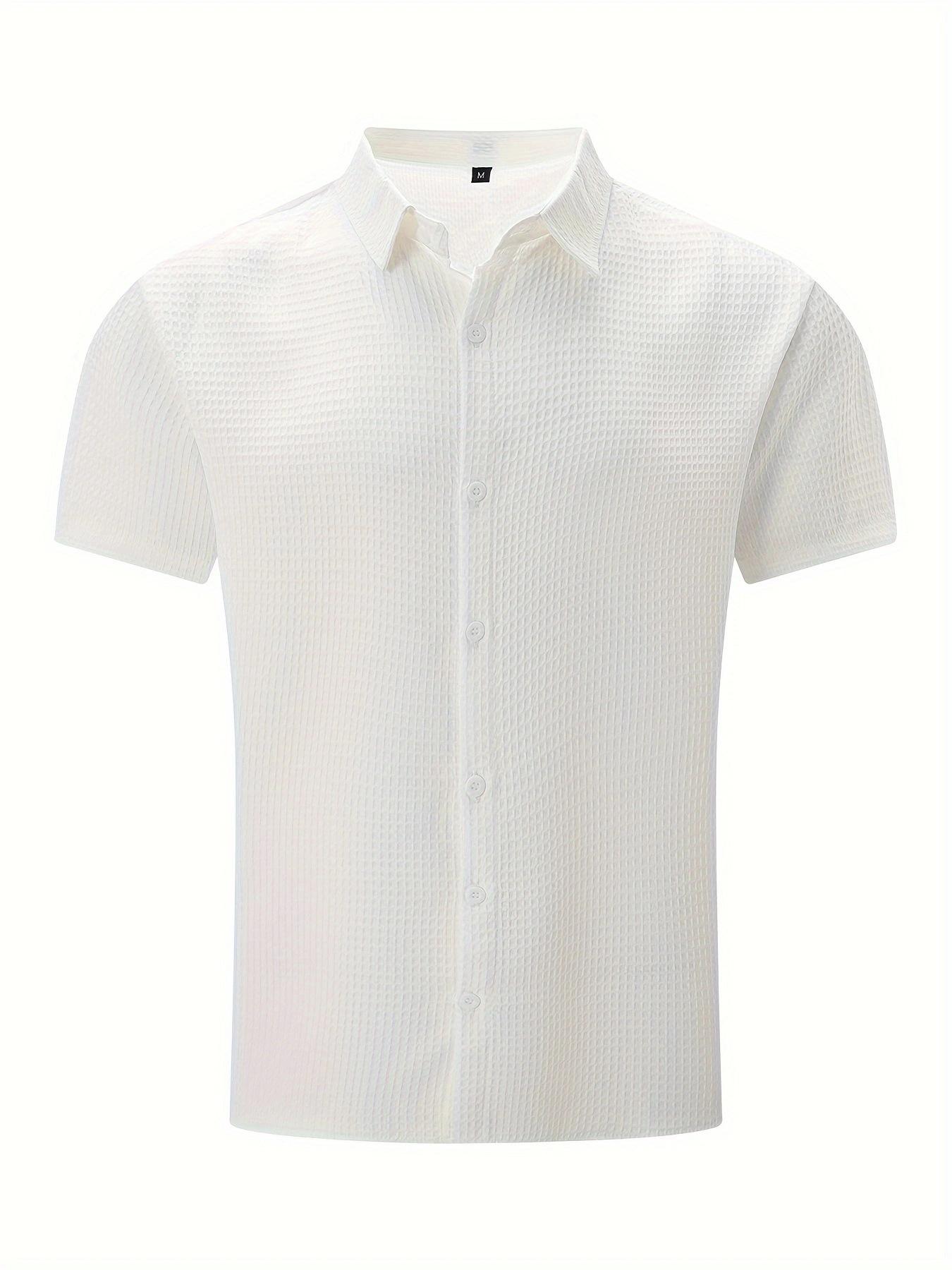 Camisas da Moda Transfronteiriça 2025 Camisas Masculinas de Verão Xadrez Jacquard Escritório Soltas Casuais de Manga Curta