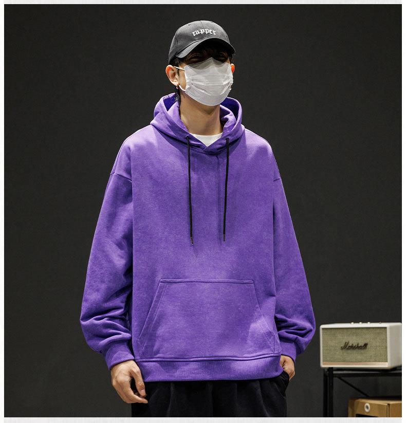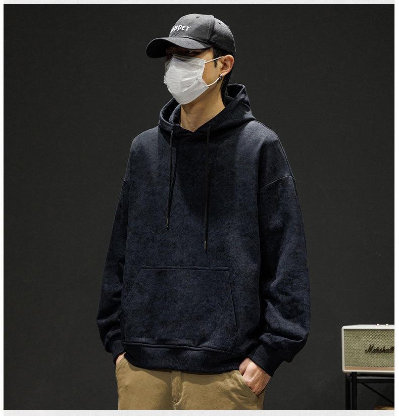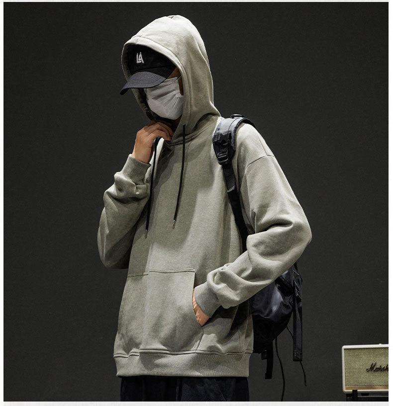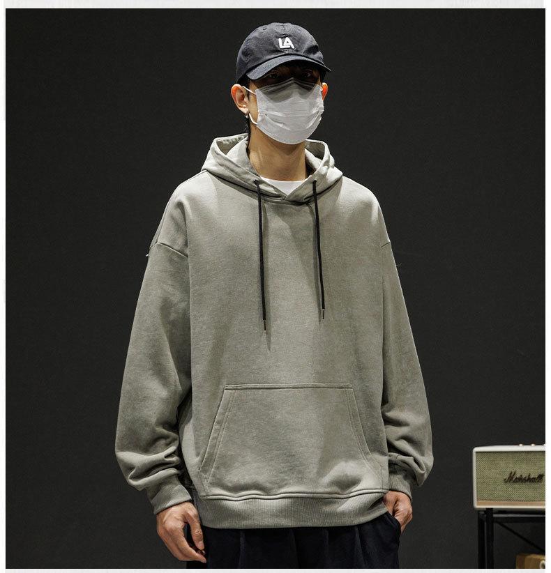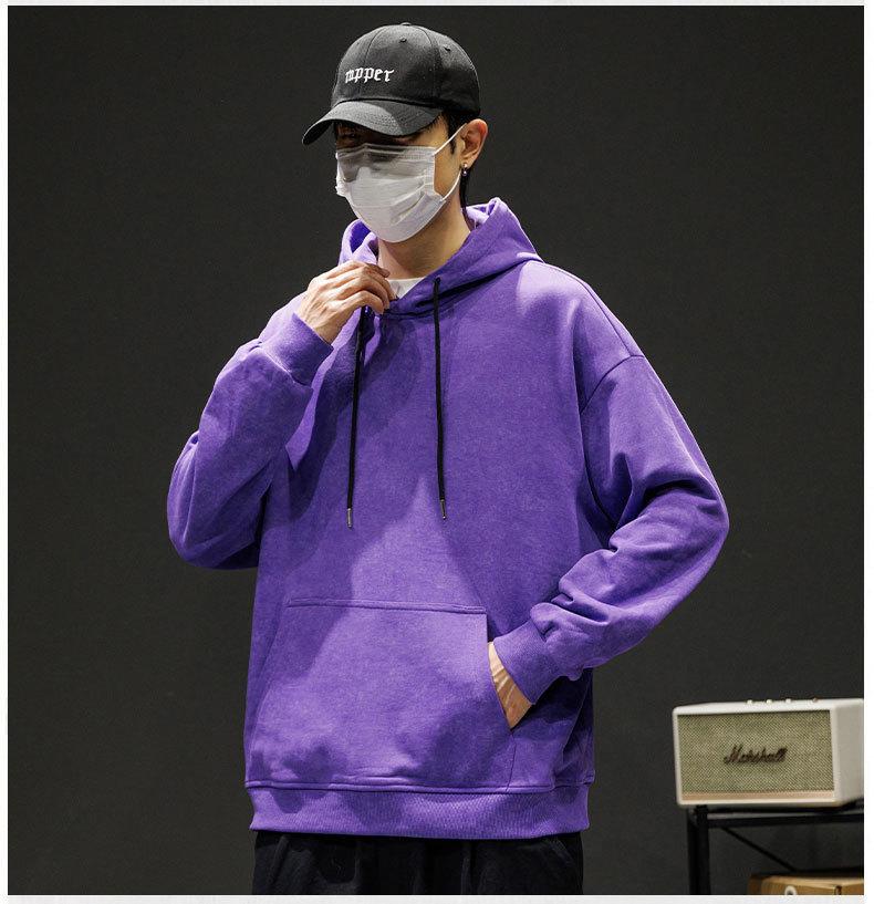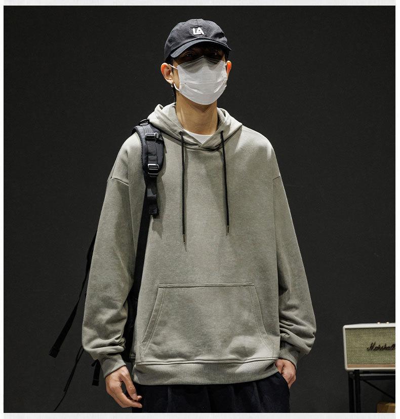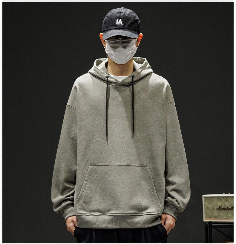 Moletom Masculino Americano Personalizado 2024 Primavera e Outono Novo Solto com Capuz Versátil Cor Pura Estilo Simples Manga Longa