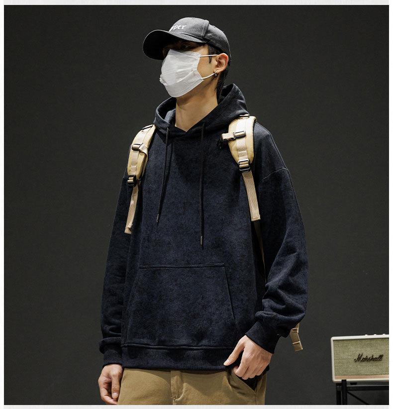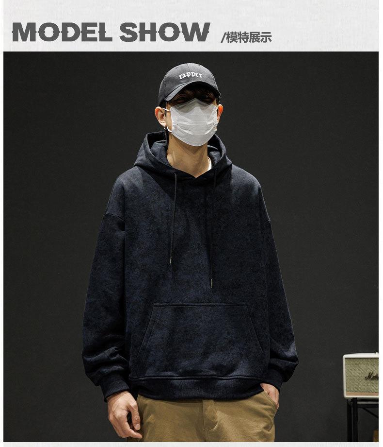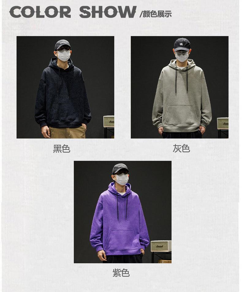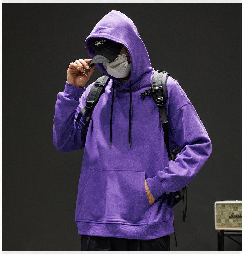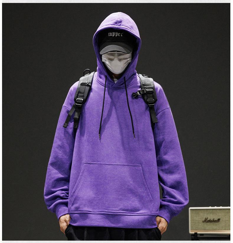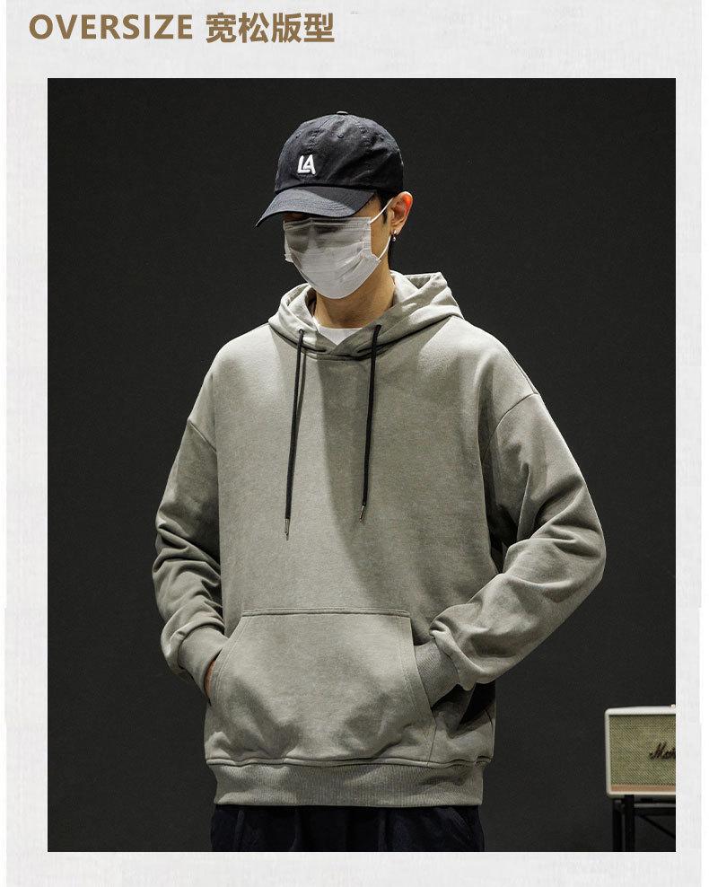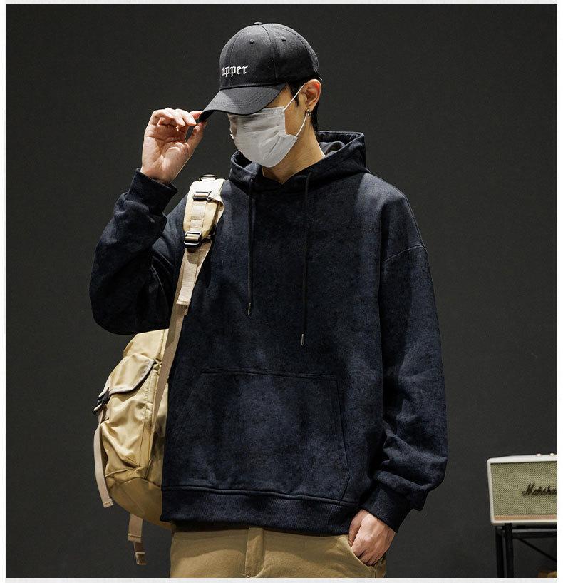 Moletom Masculino Americano Personalizado 2024 Primavera e Outono Novo Solto com Capuz Versátil Cor Pura Estilo Simples Manga Longa