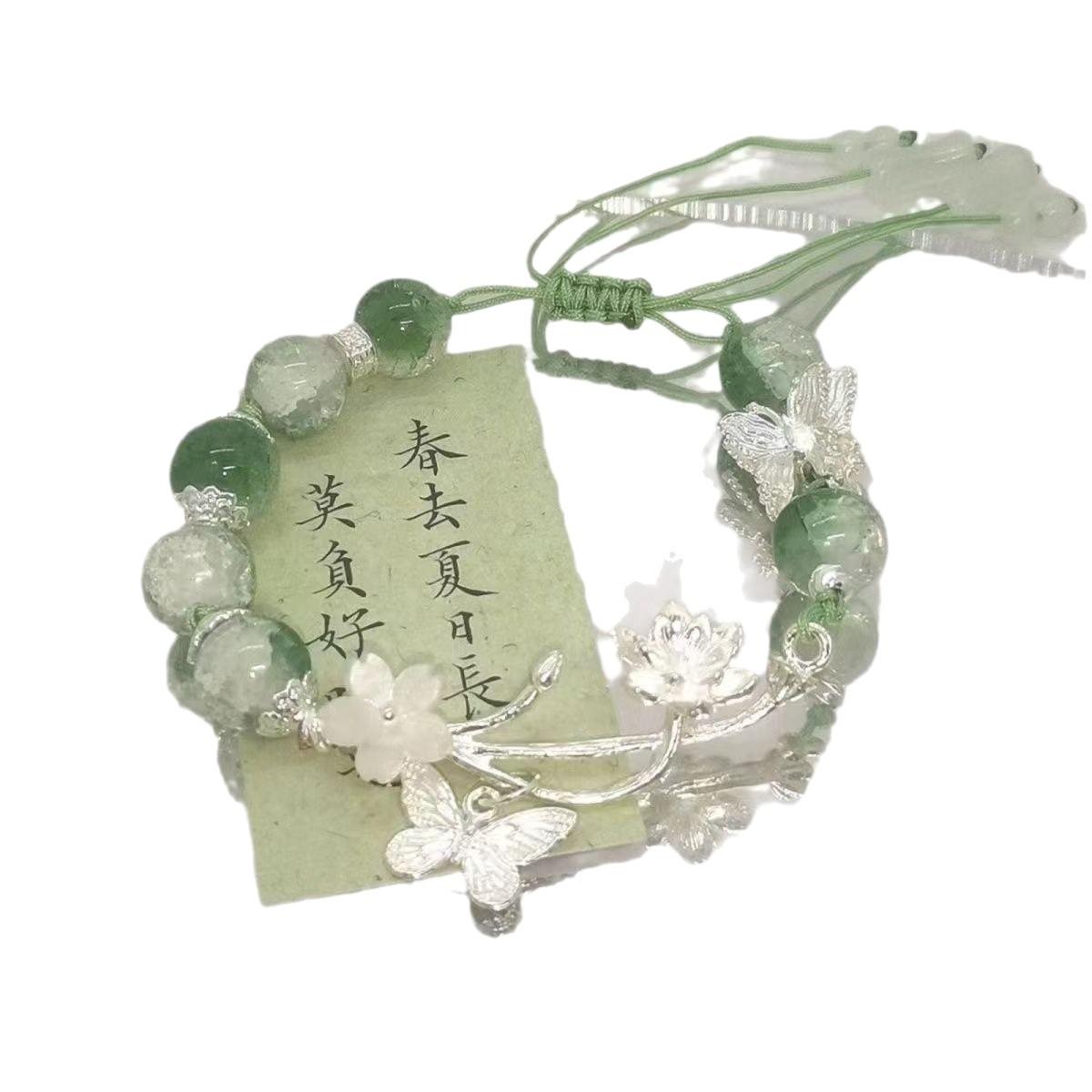 [Qingqingzi Jin] Pulseira Trançada Verde Estilo Antigo Chinês Pulseira Bestie Design Borboleta