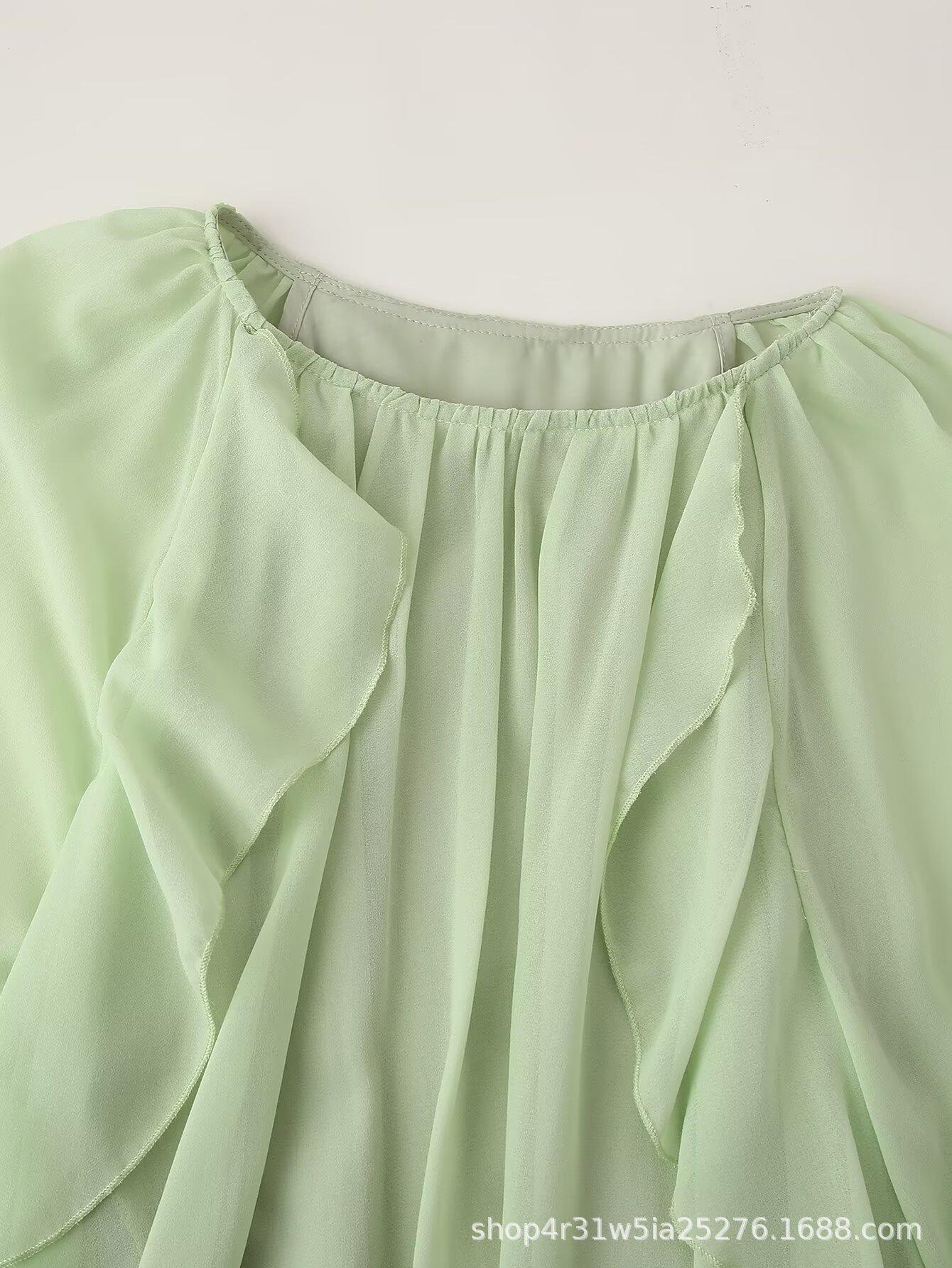 Europeu e Americano 2024 Novo Outono Vestido Fino de Festa Feminino Francês Retrô Gola Redonda Decoração Babados em Camadas