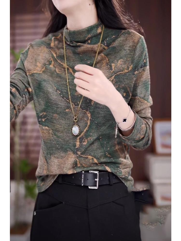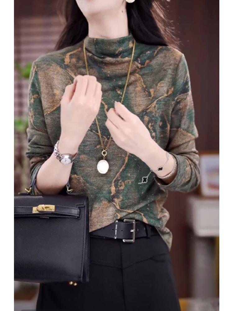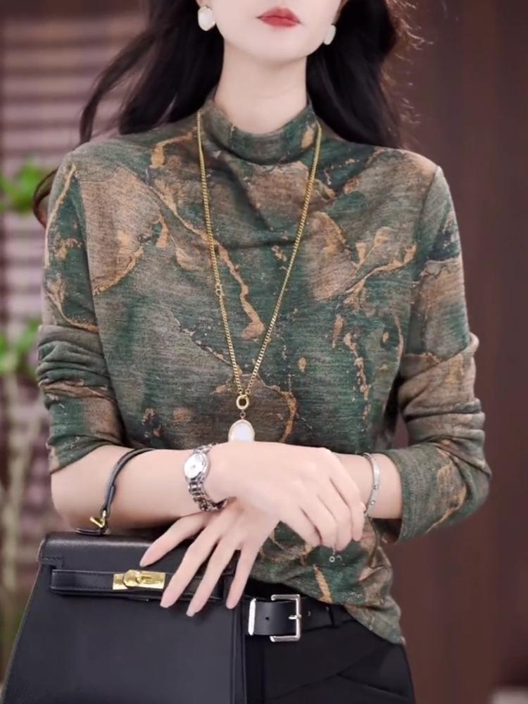 Blusa Base Layer Feminina Estilo Mamãe Gola Alta Forrada em Lã Primavera Outono Inverno Roupa Estampa de Alta Qualidade Top Único Fashion