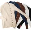 Suéter Pulôver Feminino Gola Média Manga Longa Ajustado 2025 Outono/Inverno Novo Botão Versátil Tricotado Base Top Tendência
