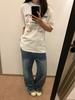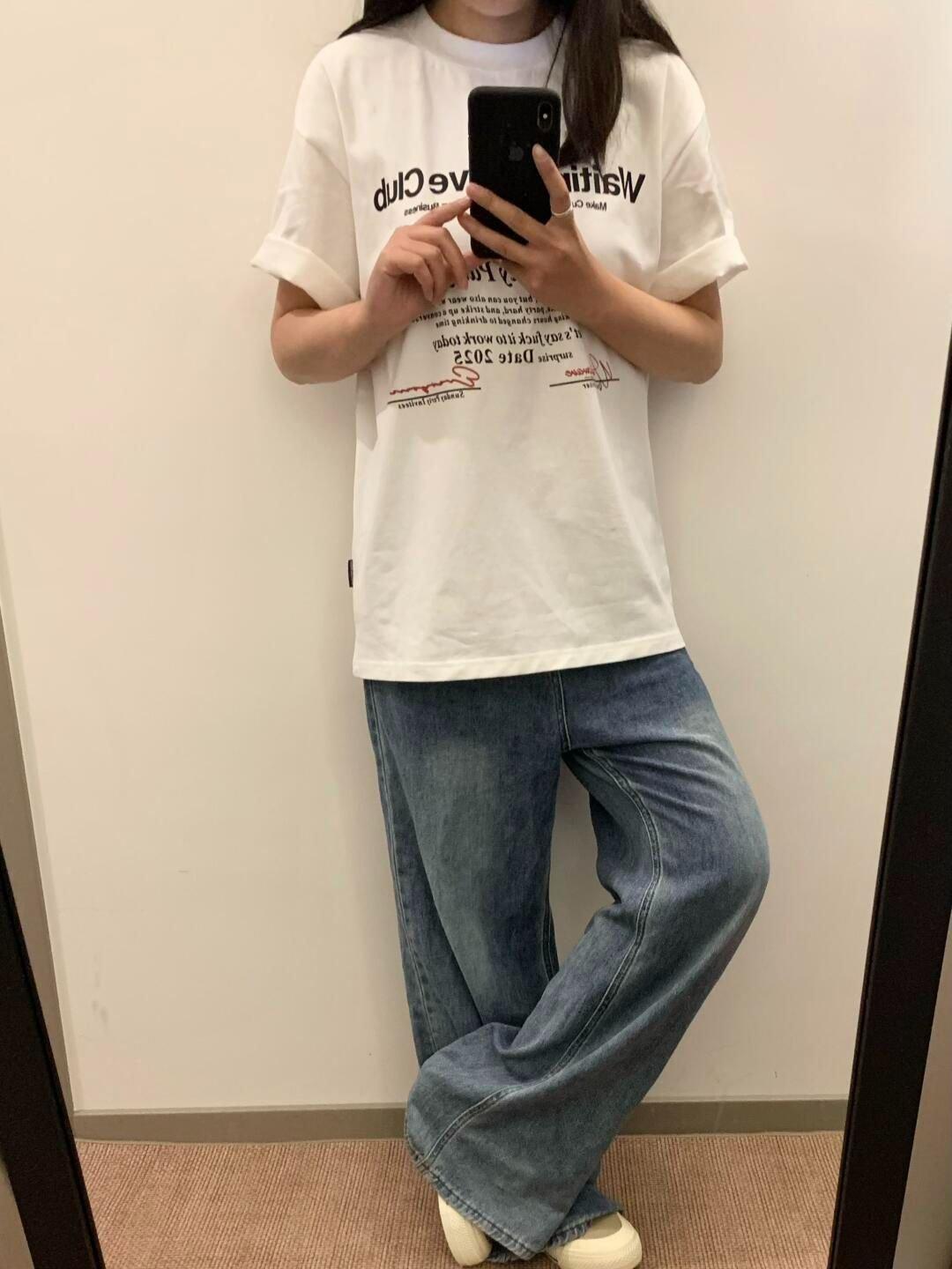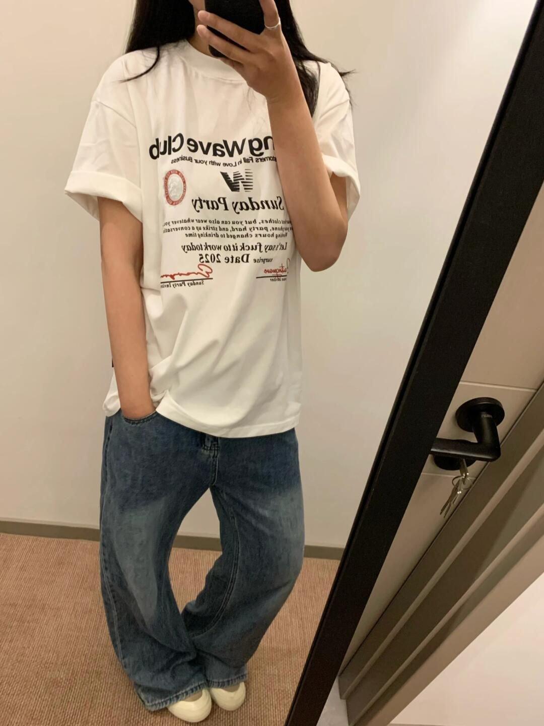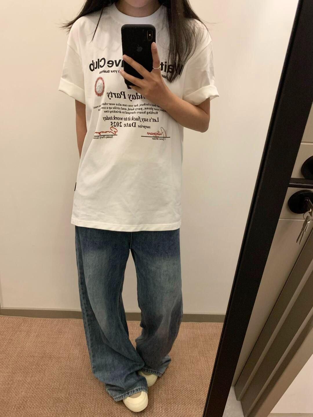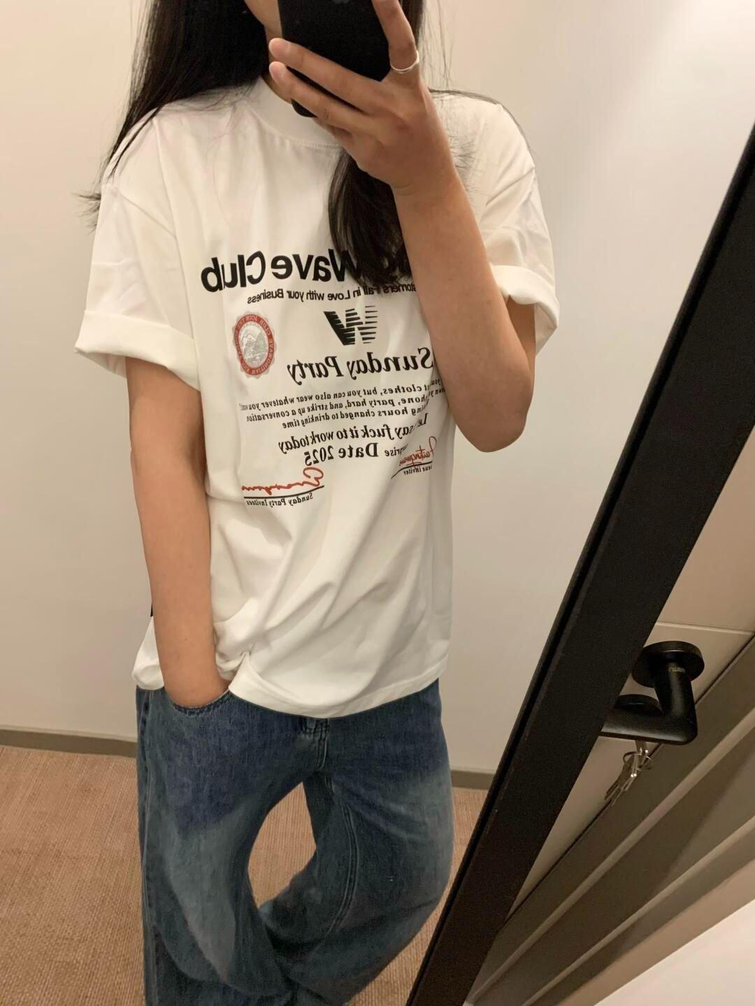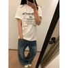 Camiseta Feminina Moderna e Descolada de Algodão Puro de Manga Curta com Estampa de Arte Camiseta de Manga Média Top Roupas Nicho Moderna Estilo Doce