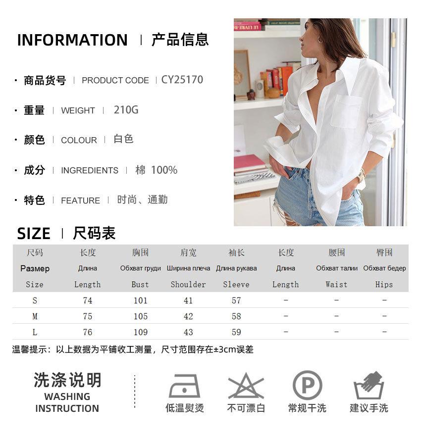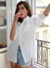Nova Camisa Branca Simples Versátil de Algodão Puro de Manga Comprida Outono/Inverno Feminina Senso de Design Temperamento Moda 2025 Deslocamento Transfronteiriço