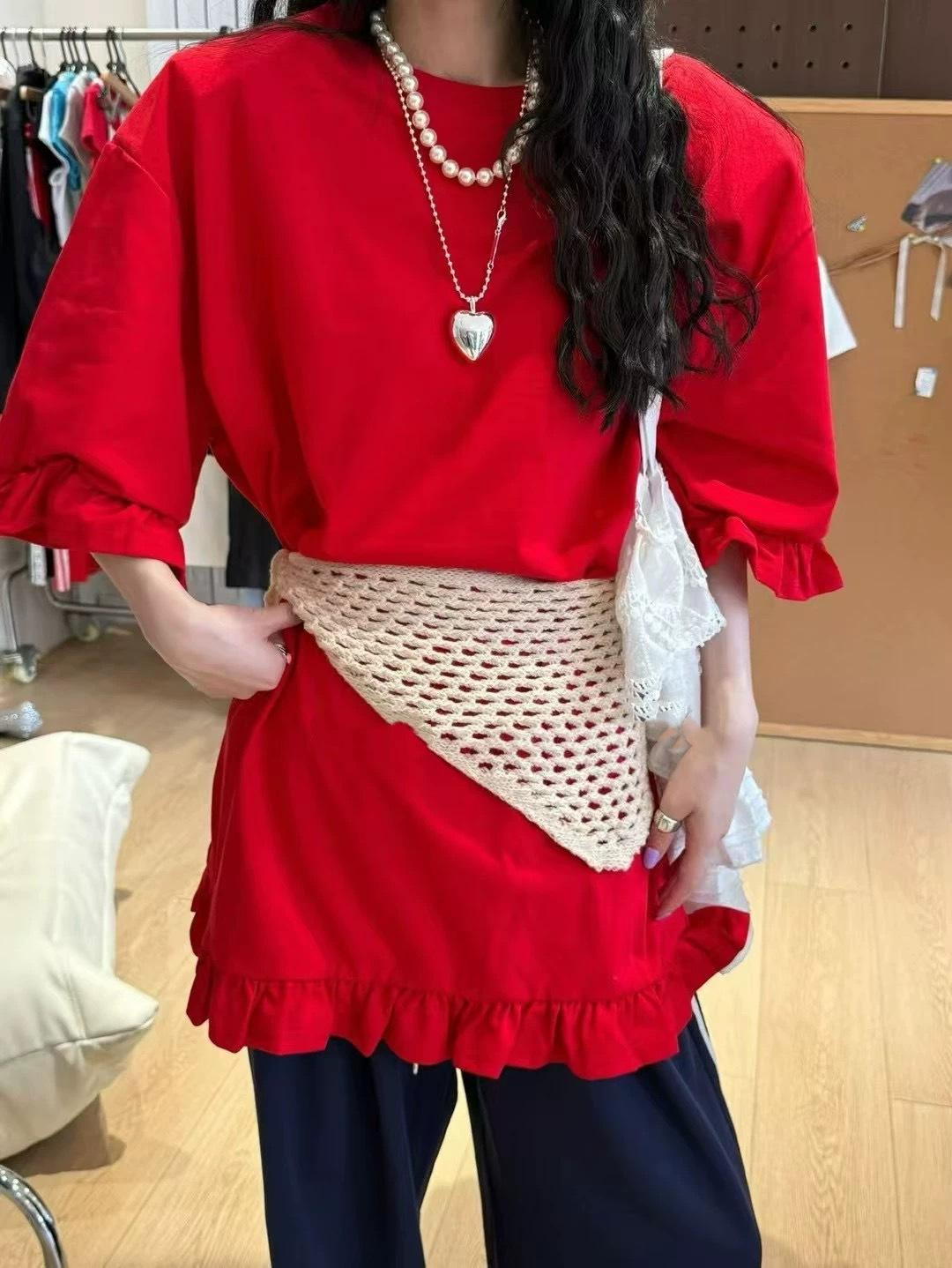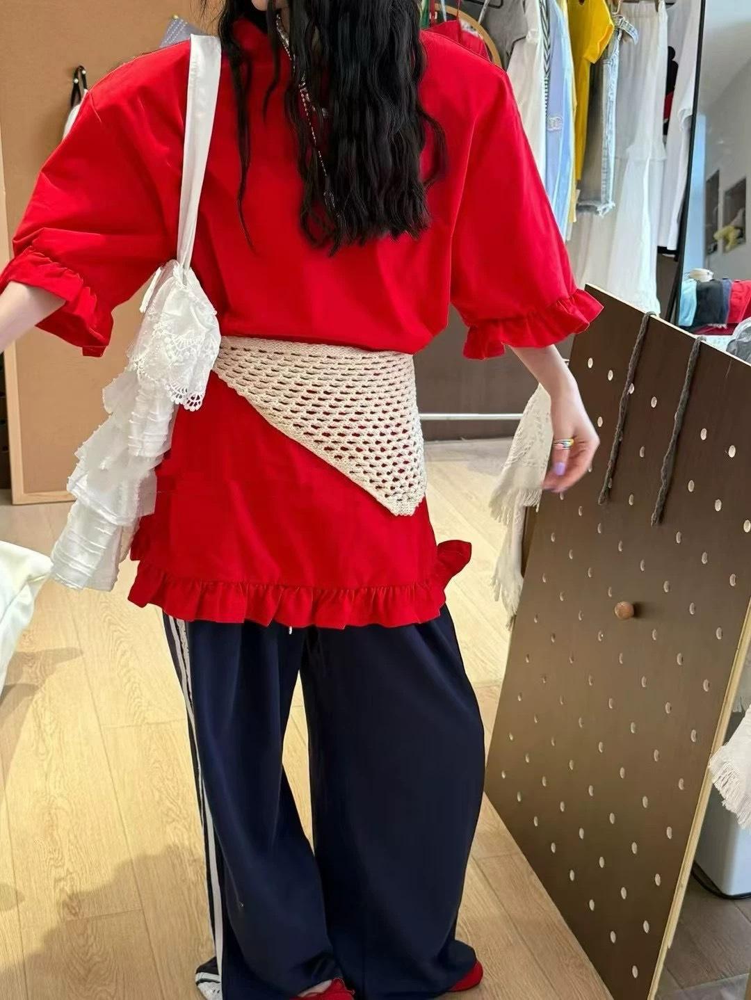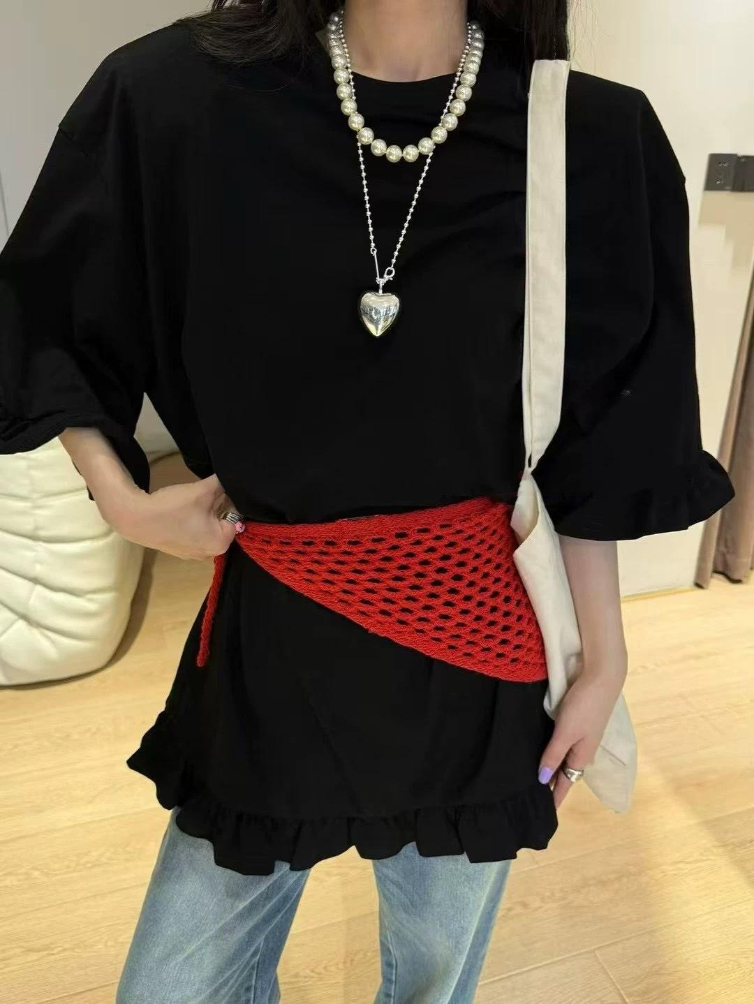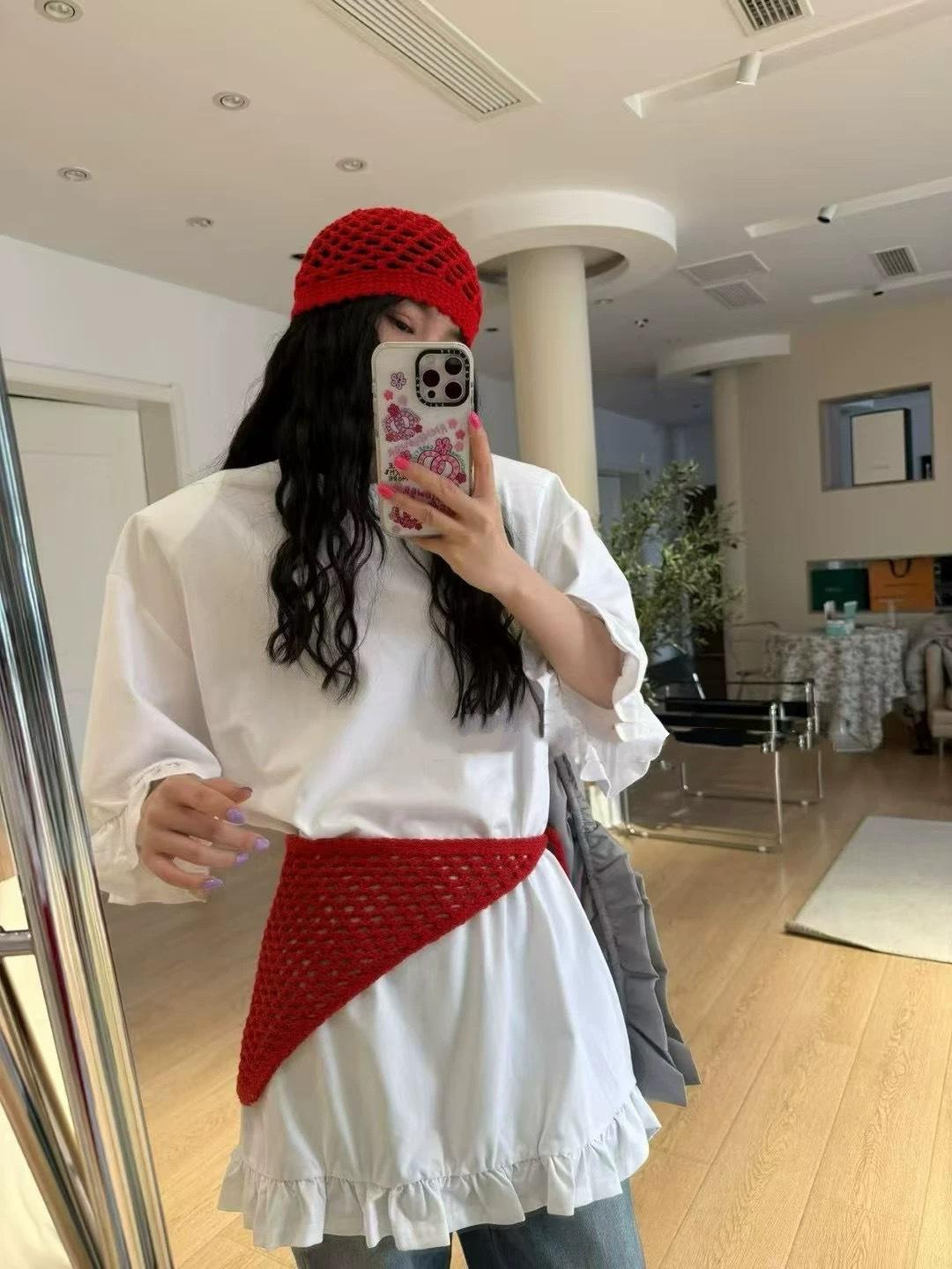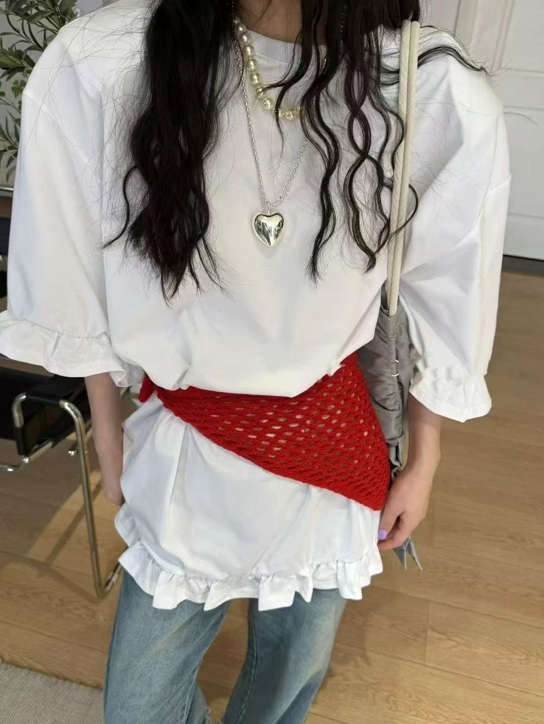 Sobretudo Super Atmosférico Crochê Vazado Retrô Alça Lenço Triângulo Moda Camadas Babador Lenço com Roupa Lenço de Cintura
