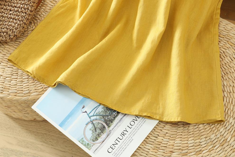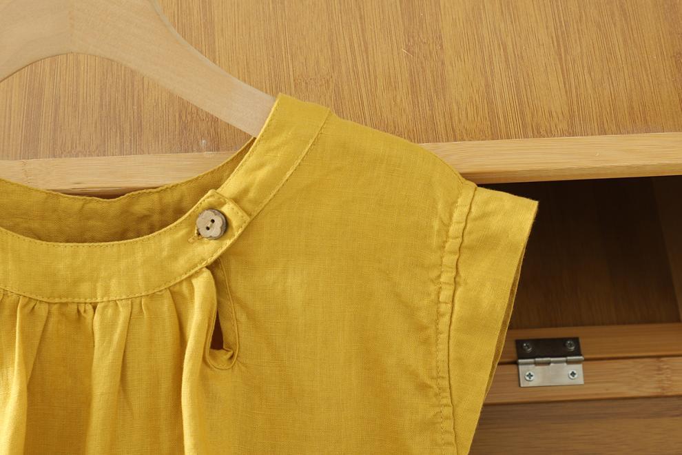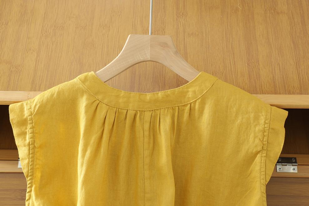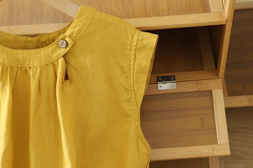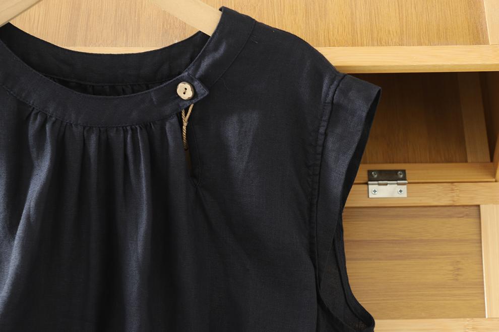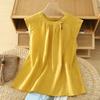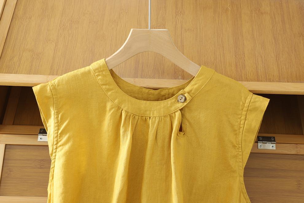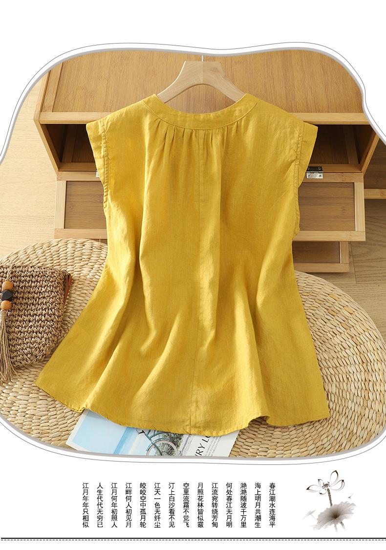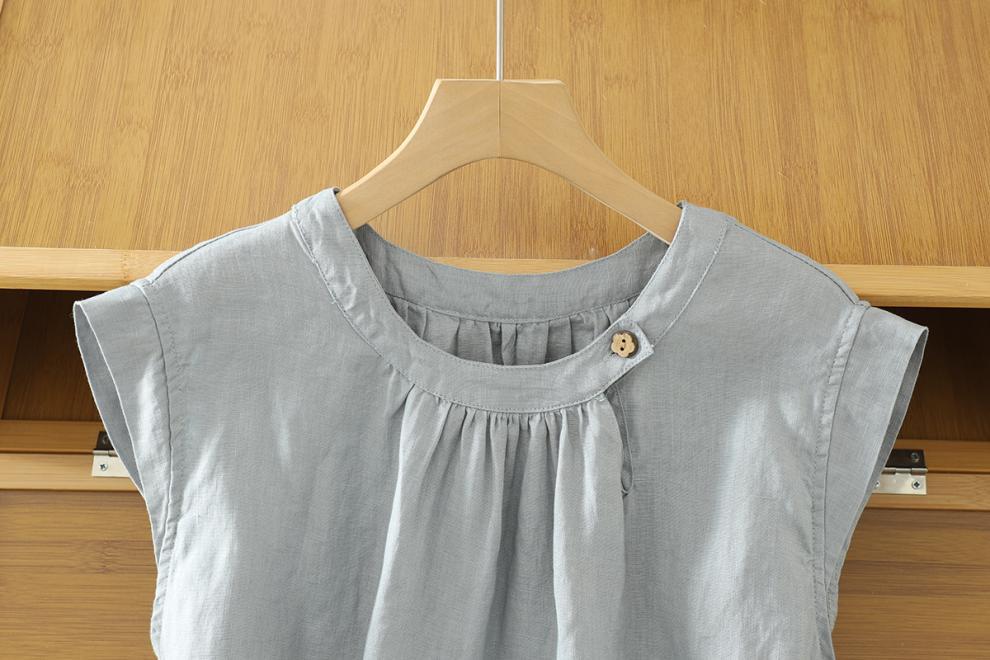 Foto real em estoque verão 2025 novo senso de design gola redonda algodão e linho regata sem mangas mulheres versátil top manga bufante pequena mulheres