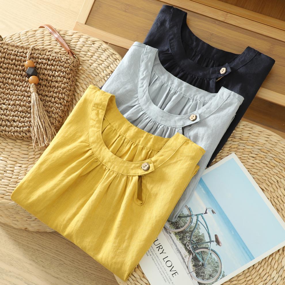 Compre Foto real em estoque verão 2025 novo senso de design gola redonda algodão e linho regata sem mangas mulheres versátil top manga bufante pequena mulheres no atacado no Joom.pro