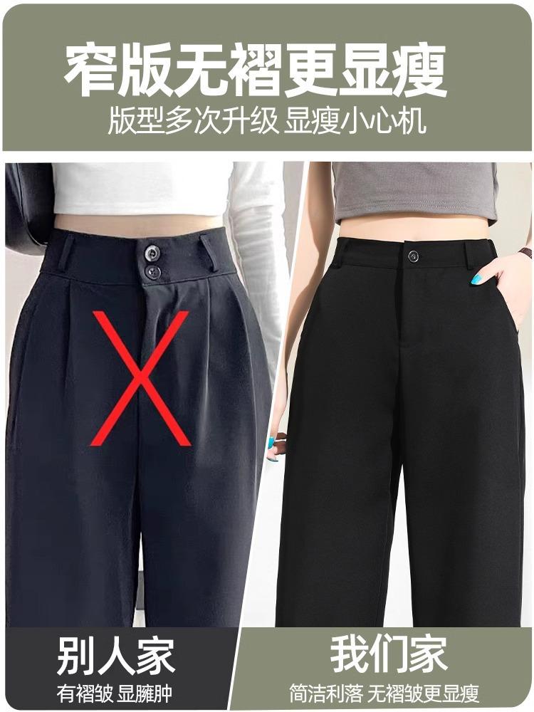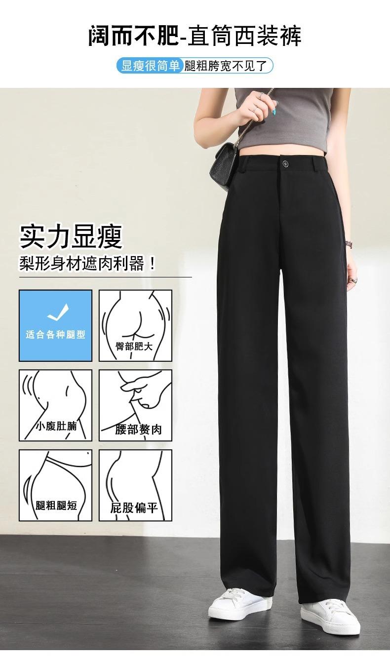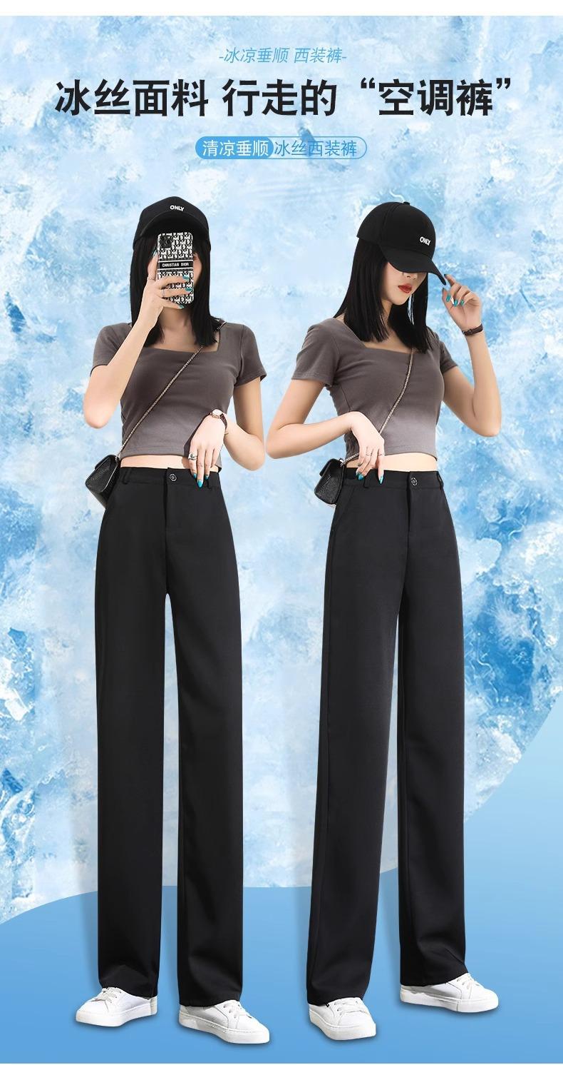 Compre Calças Femininas de Verão em Seda Gelo Fluida de Perna Estreita e Larga, Calças de Alfaiataria Pretas para Primavera/Verão, Cintura Alta, Modeladoras, Soltas, Casuais, de Perna Reta, Longas, Finas no atacado no Joom.pro
