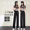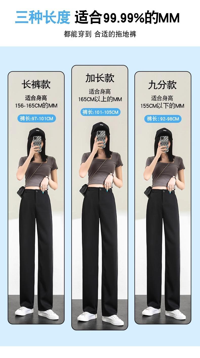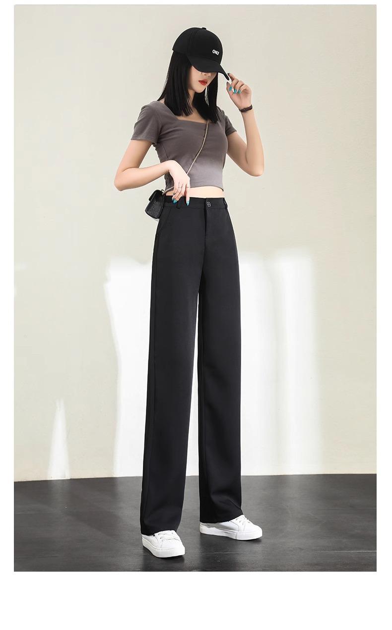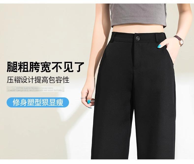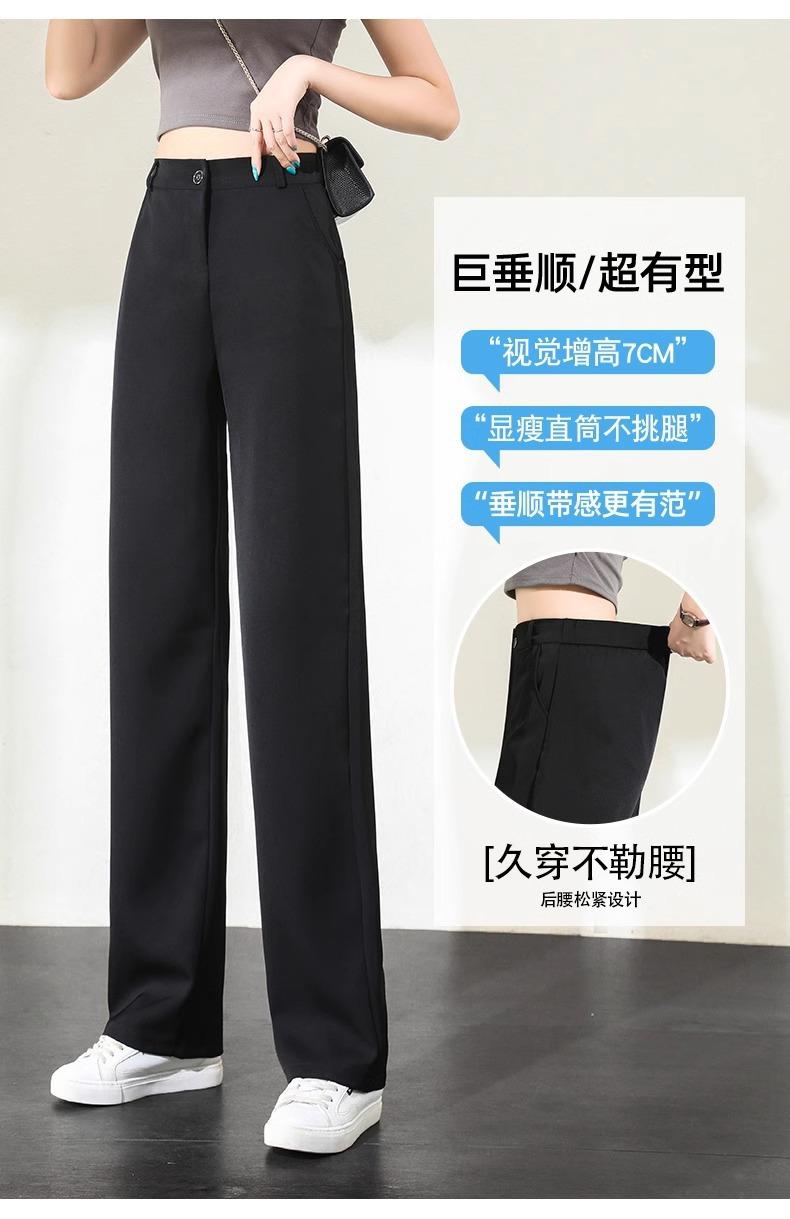Compre Calças Femininas de Verão em Seda Gelo Fluida de Perna Estreita e Larga, Calças de Alfaiataria Pretas para Primavera/Verão, Cintura Alta, Modeladoras, Soltas, Casuais, de Perna Reta, Longas, Finas no atacado no Joom.pro