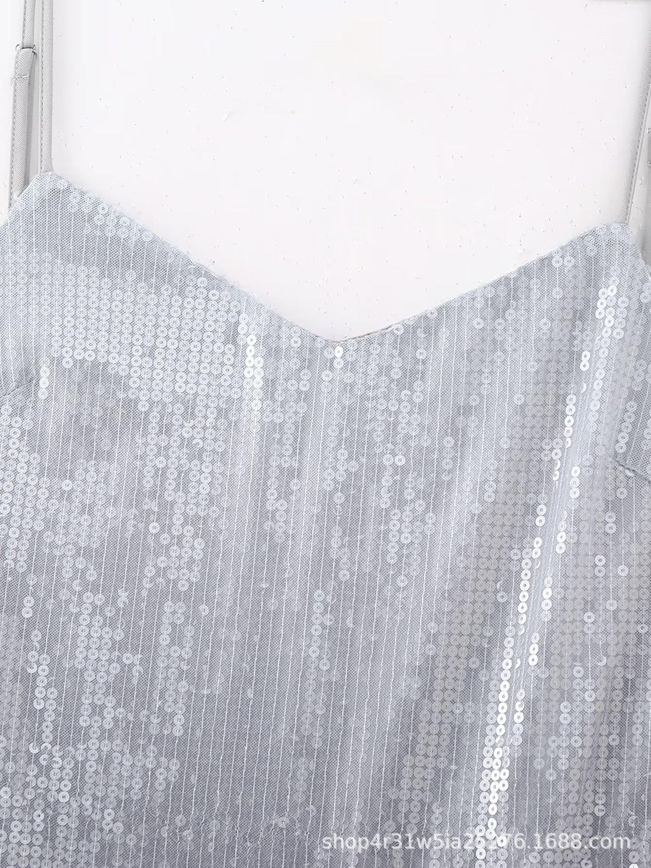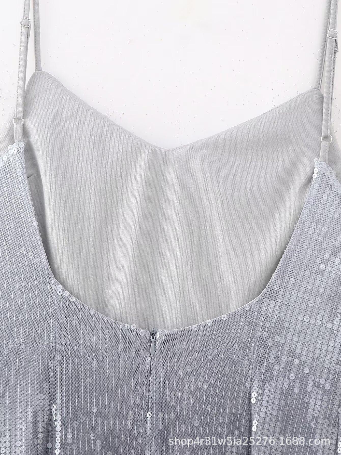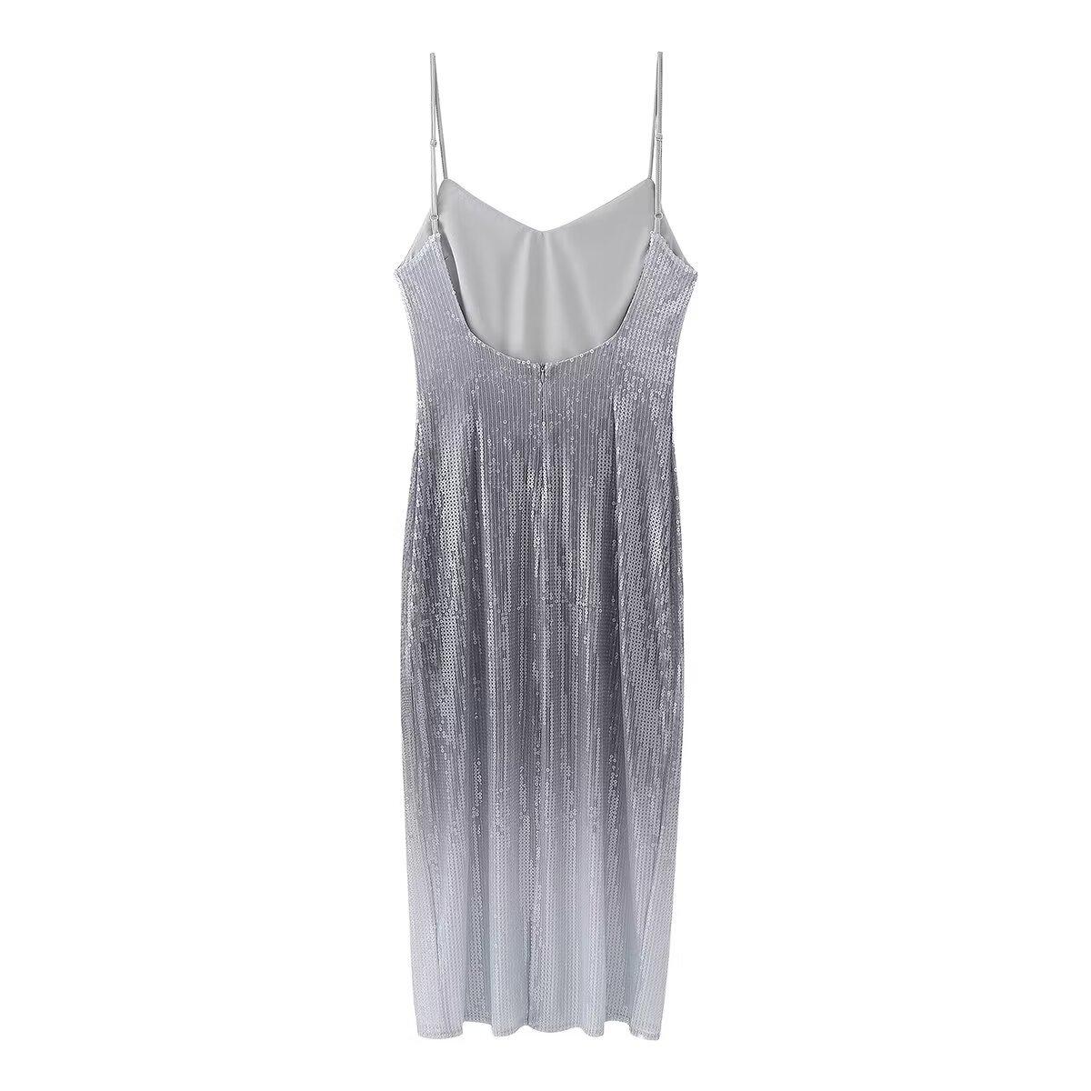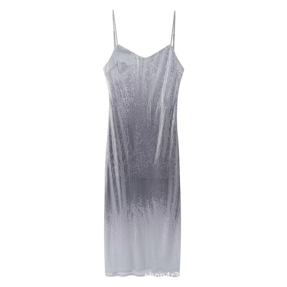 Estilo europeu e americano 2024 primavera e verão novo vestido francês de alças com contas em cores gradientes