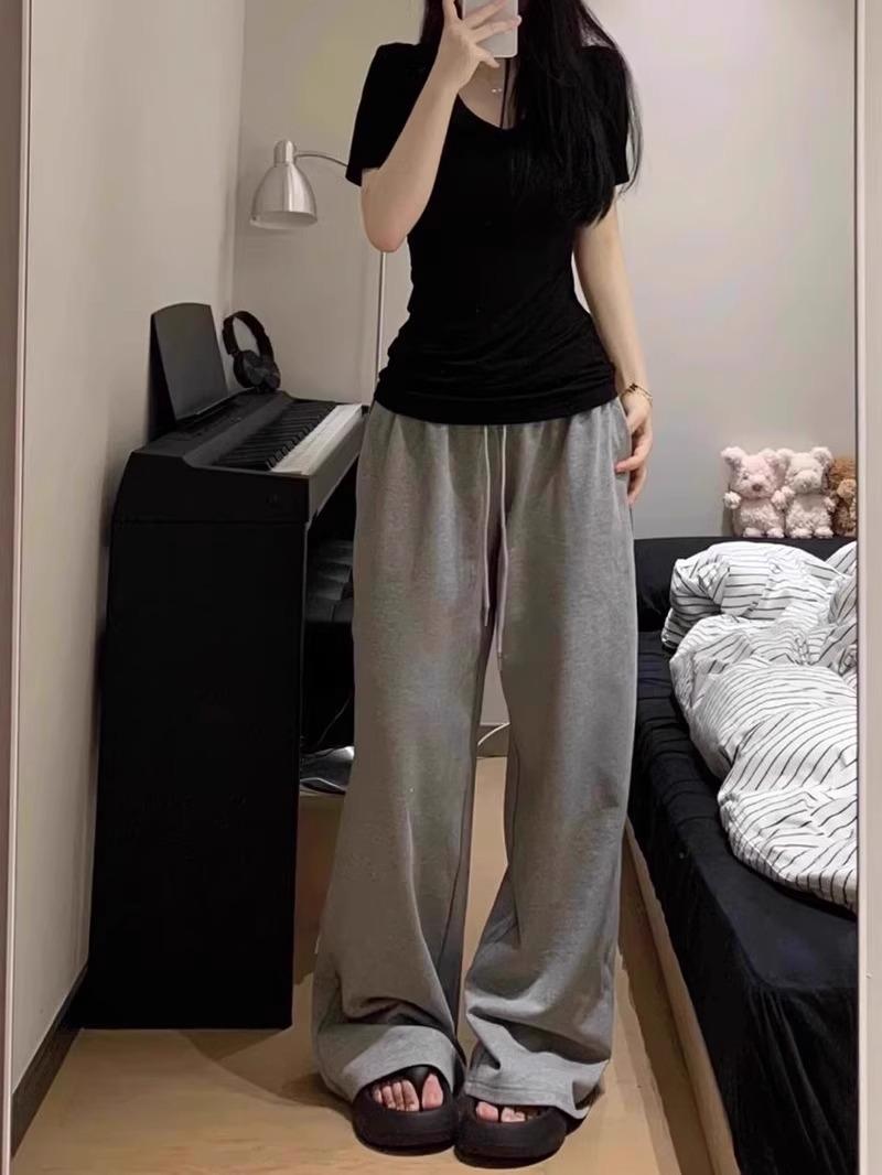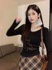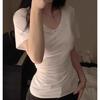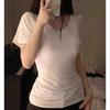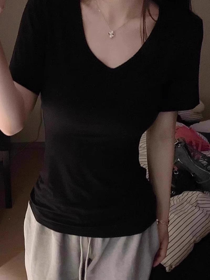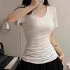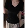 Camiseta de Manga Curta Estilo Americano Branco Spice Girl Desejo Puro Feminina Verão Decote em V Ajustada Emagrecedora Cintura Justa Elástica Versátil Top Básico