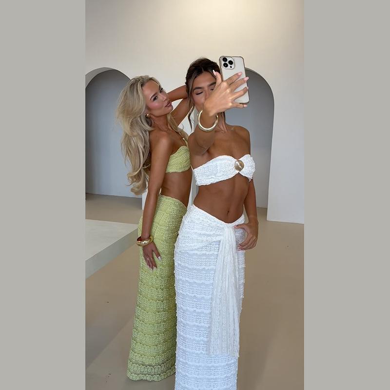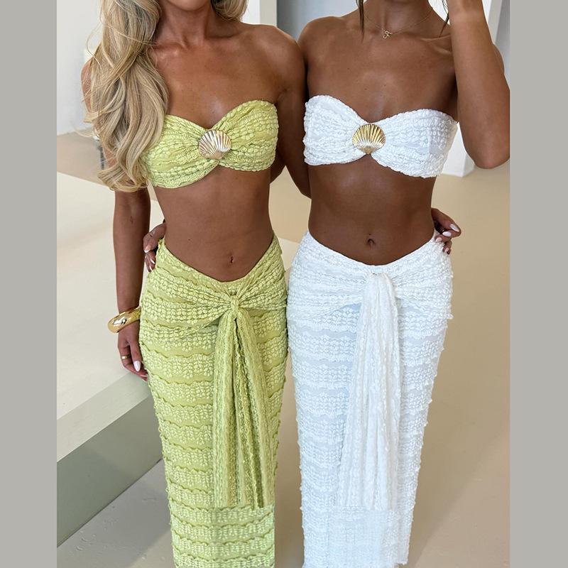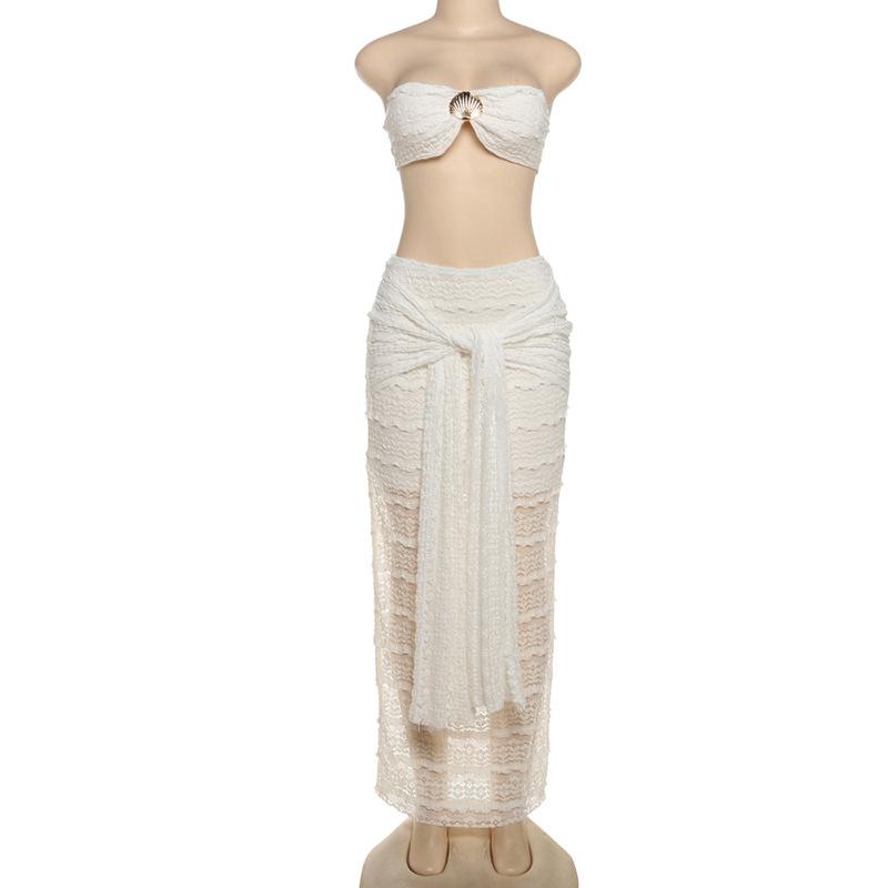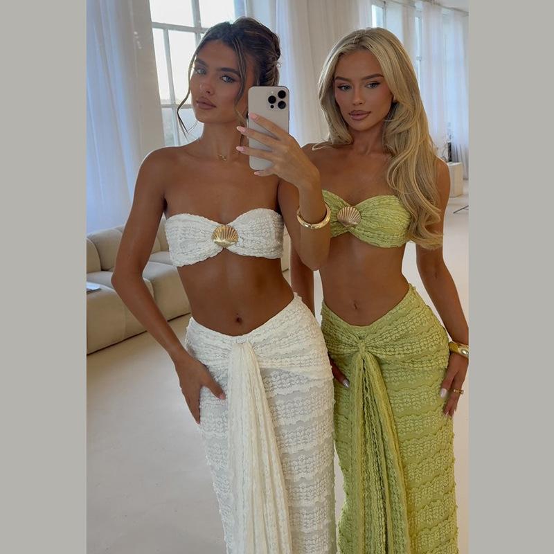Estilo Europeu e Americano Transfronteiriço 2025 Verão Novo Top Tubinho Sexy Feminino Ajustado Saia Quadril Conjunto Duas Peças
