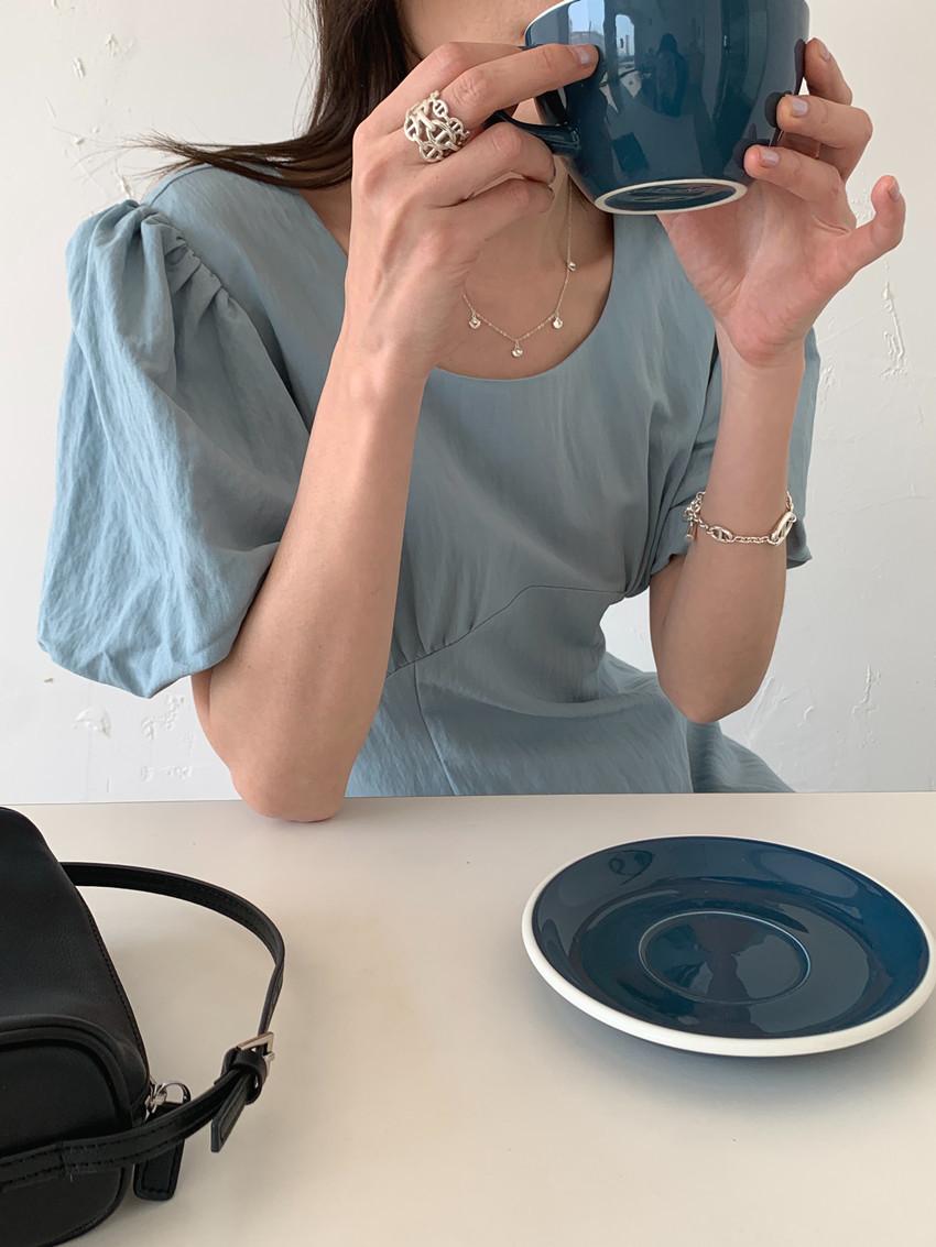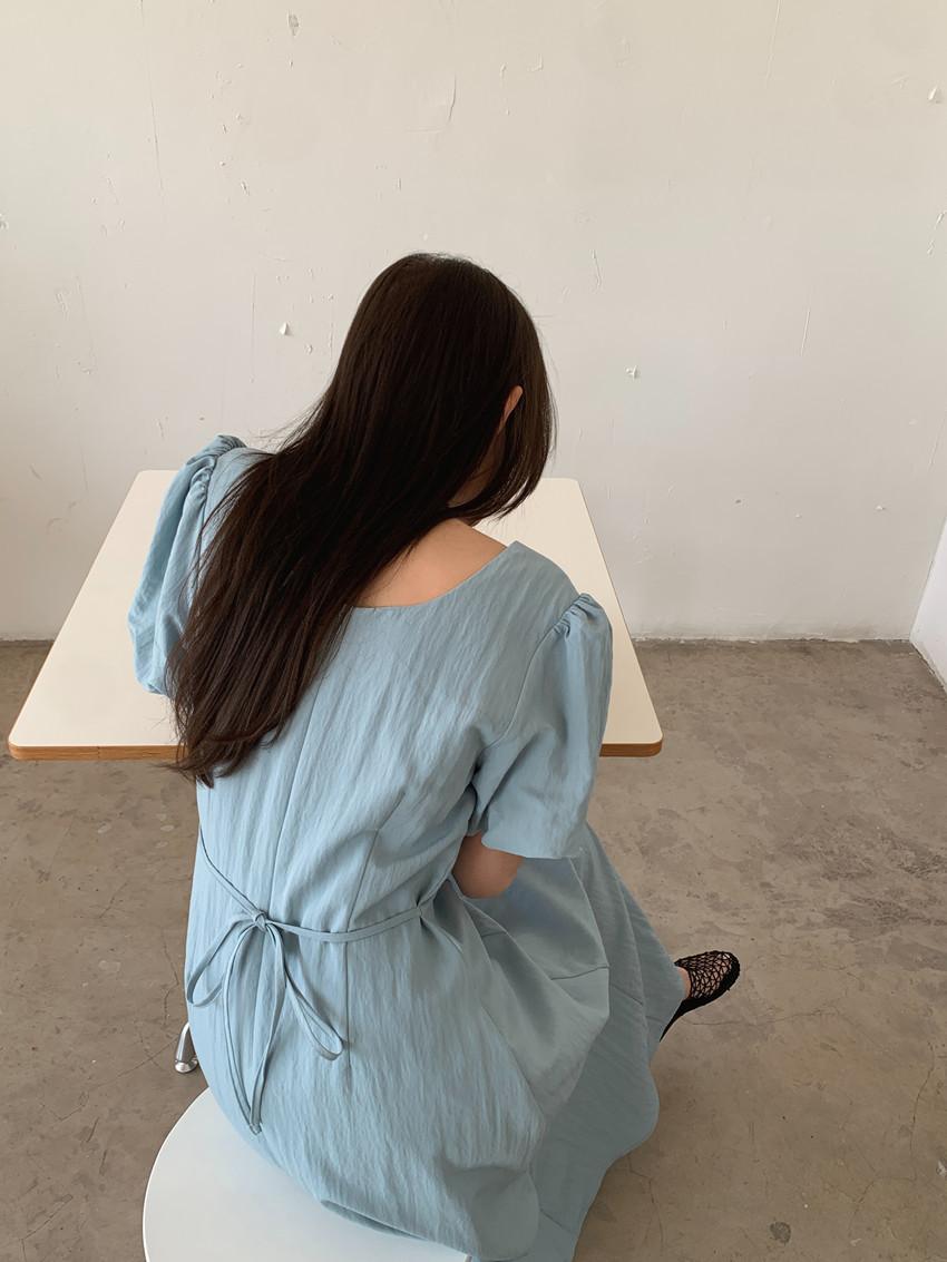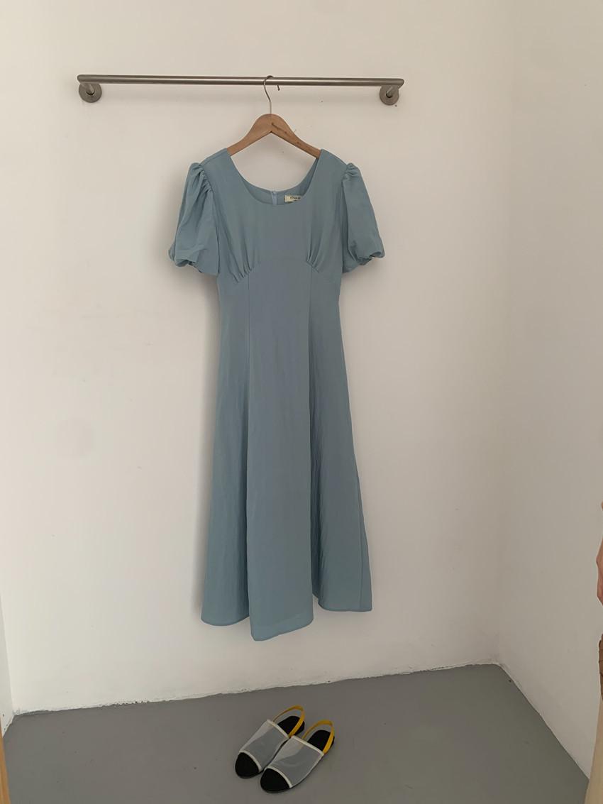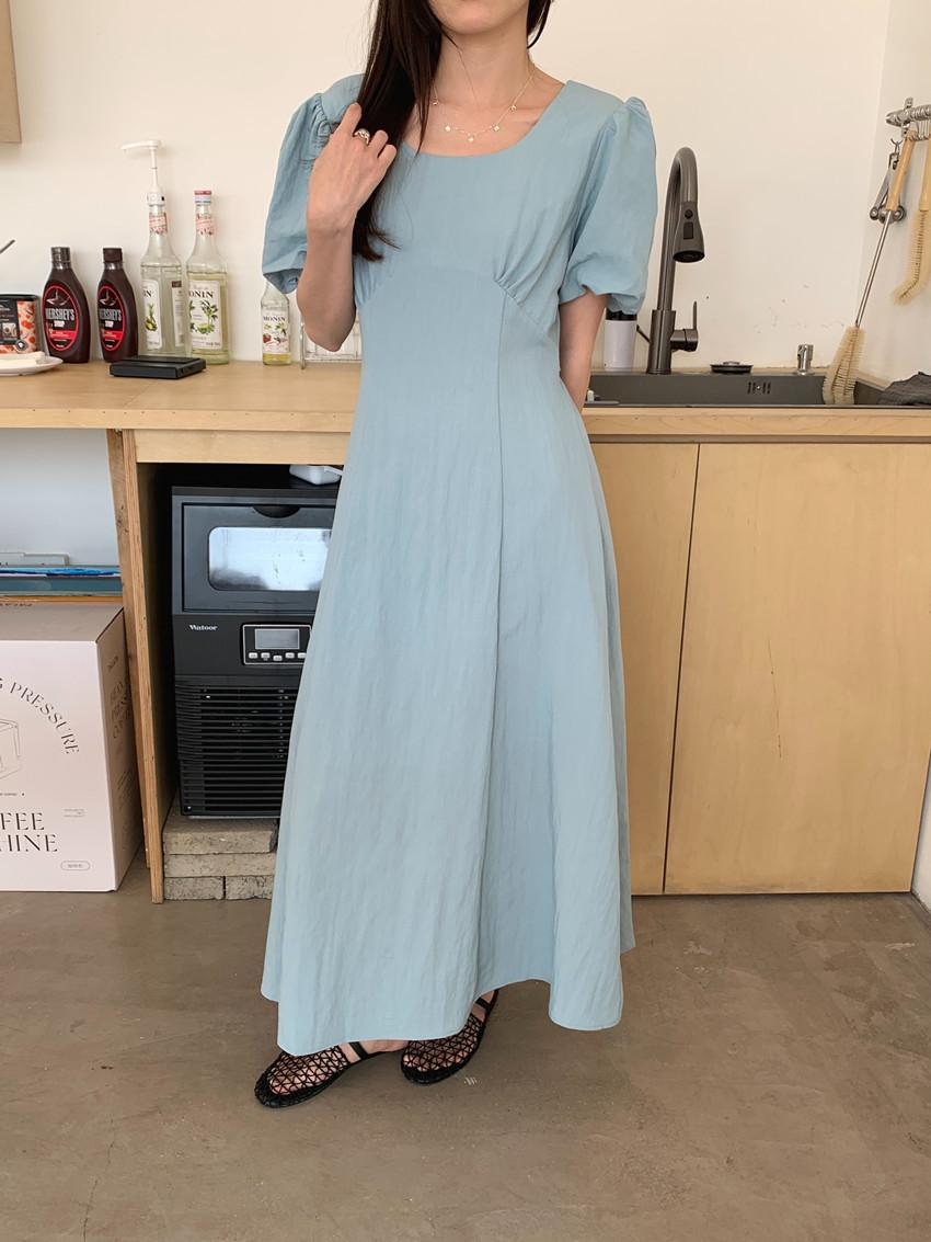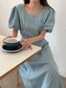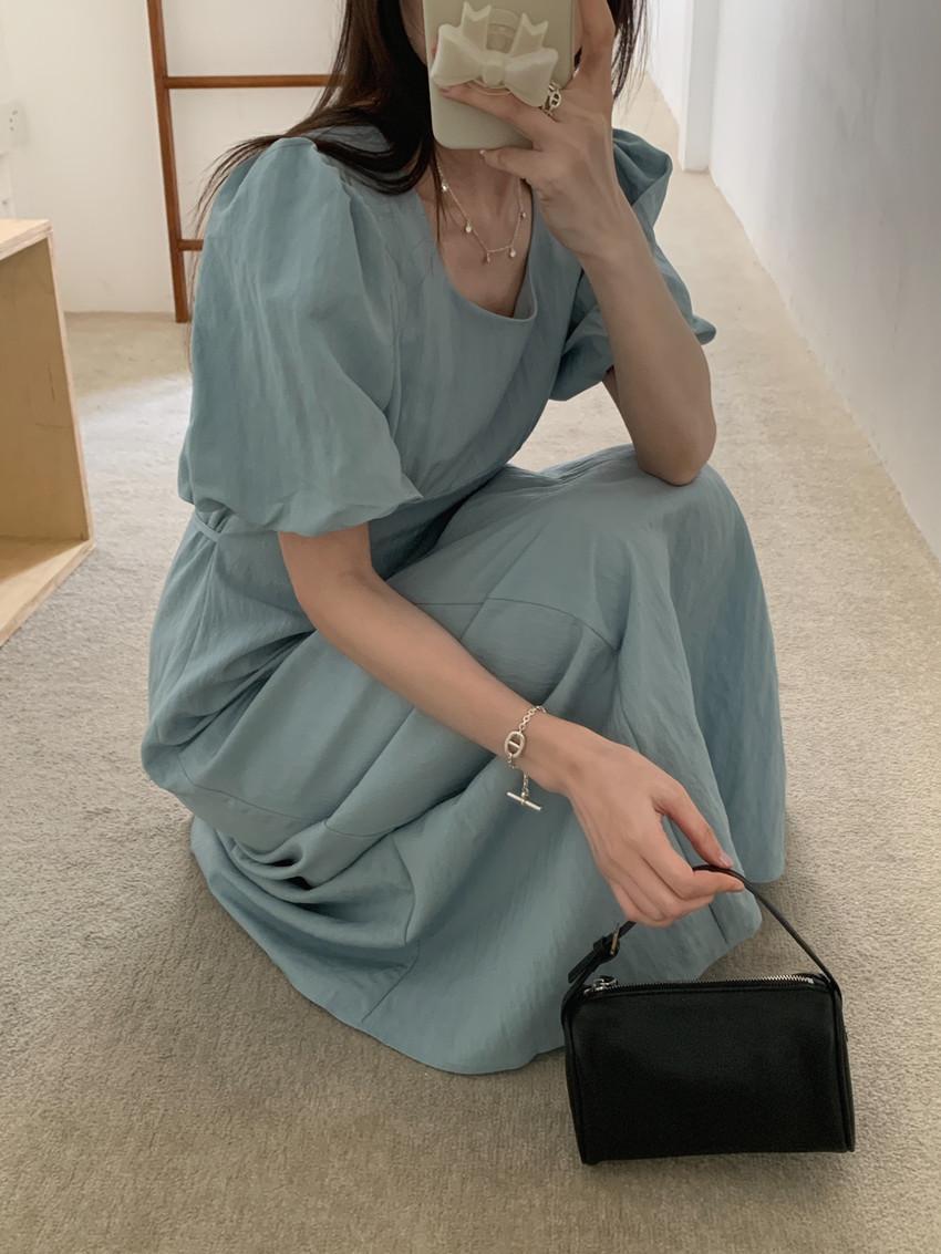 Compre Luar Branco Suave~Design Decote U Manga Bufante Cintura Marcada Amarrar Vestido Longo no atacado no Joom.pro
