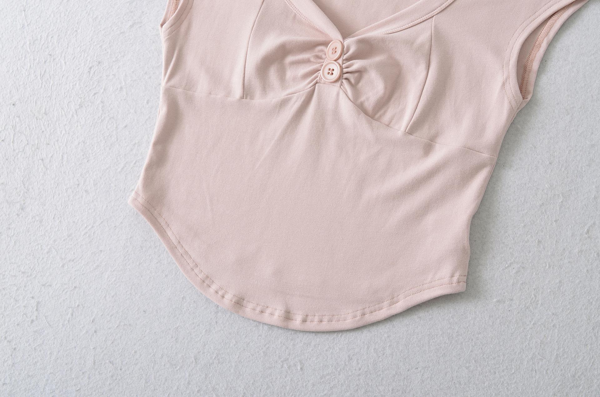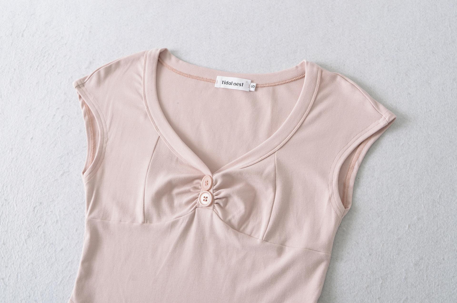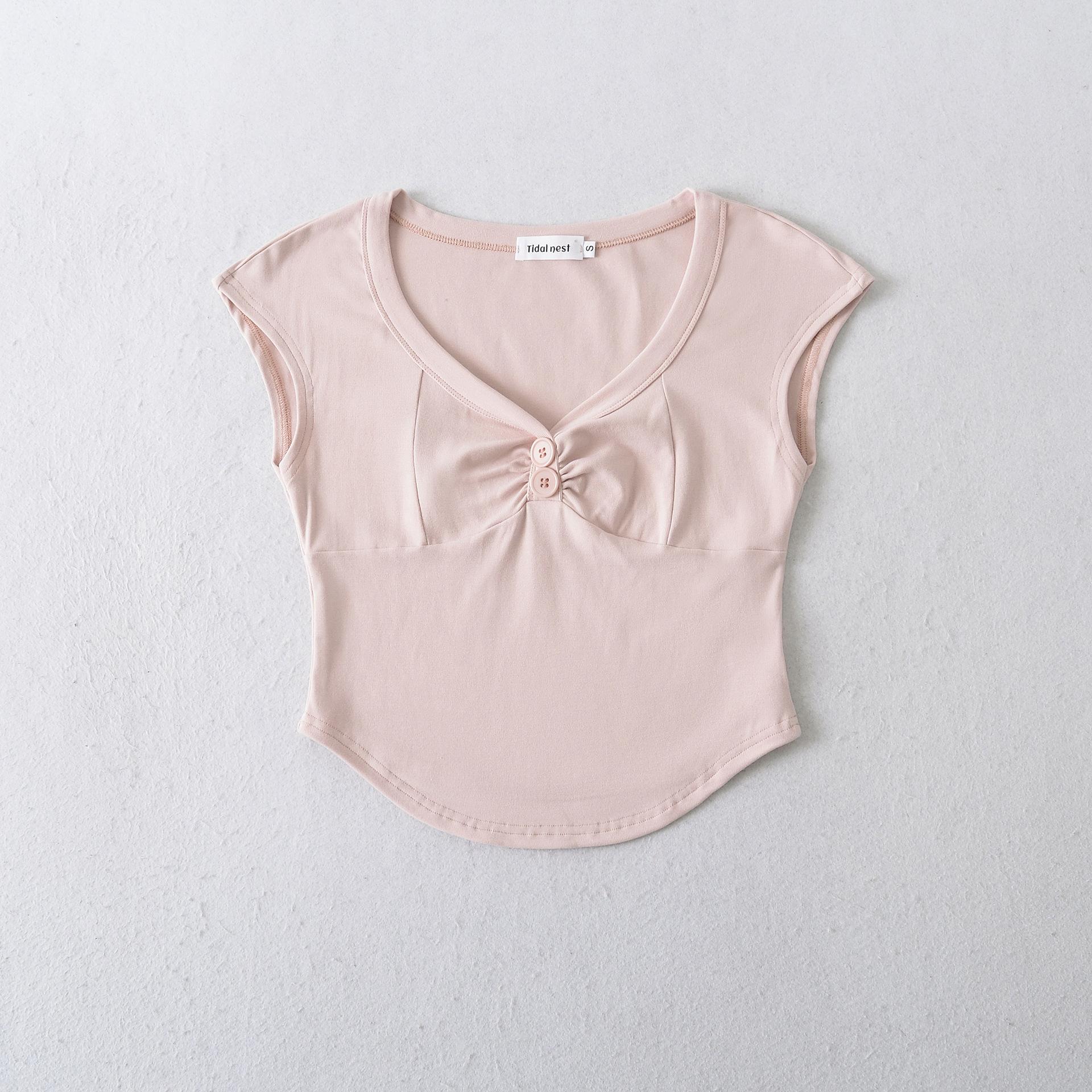 Compre 1595-2025 Novo Estilo Puro Desejo Versátil Casual Top Decote V para Mulheres, Ajuste Slim Sexy Emagrecedor Camiseta Manga Curta no atacado no Joom.pro