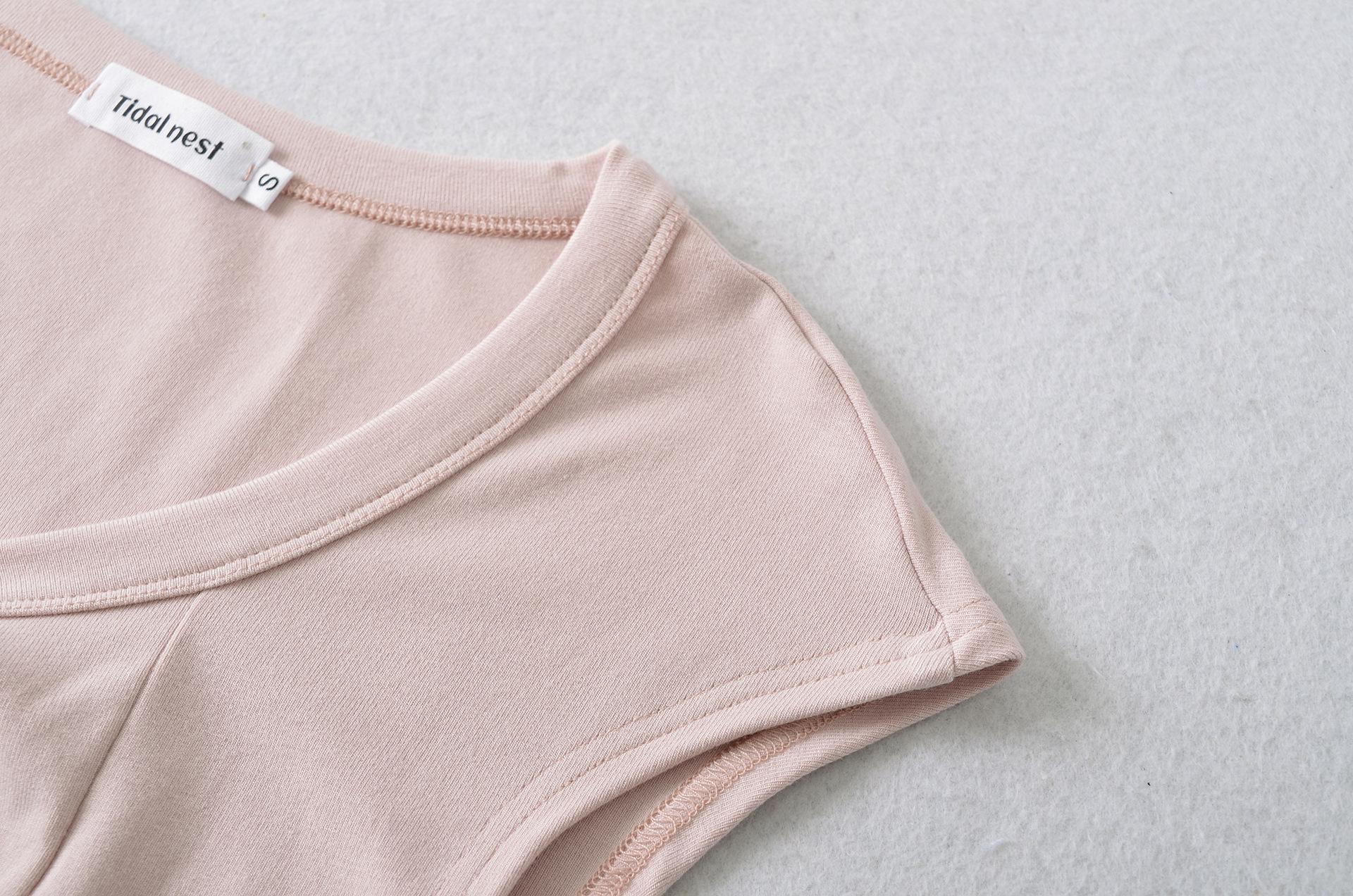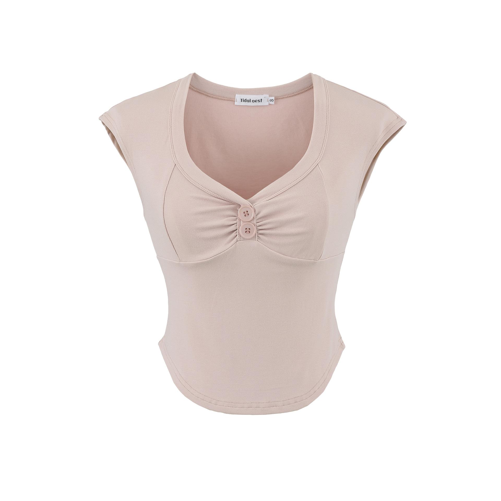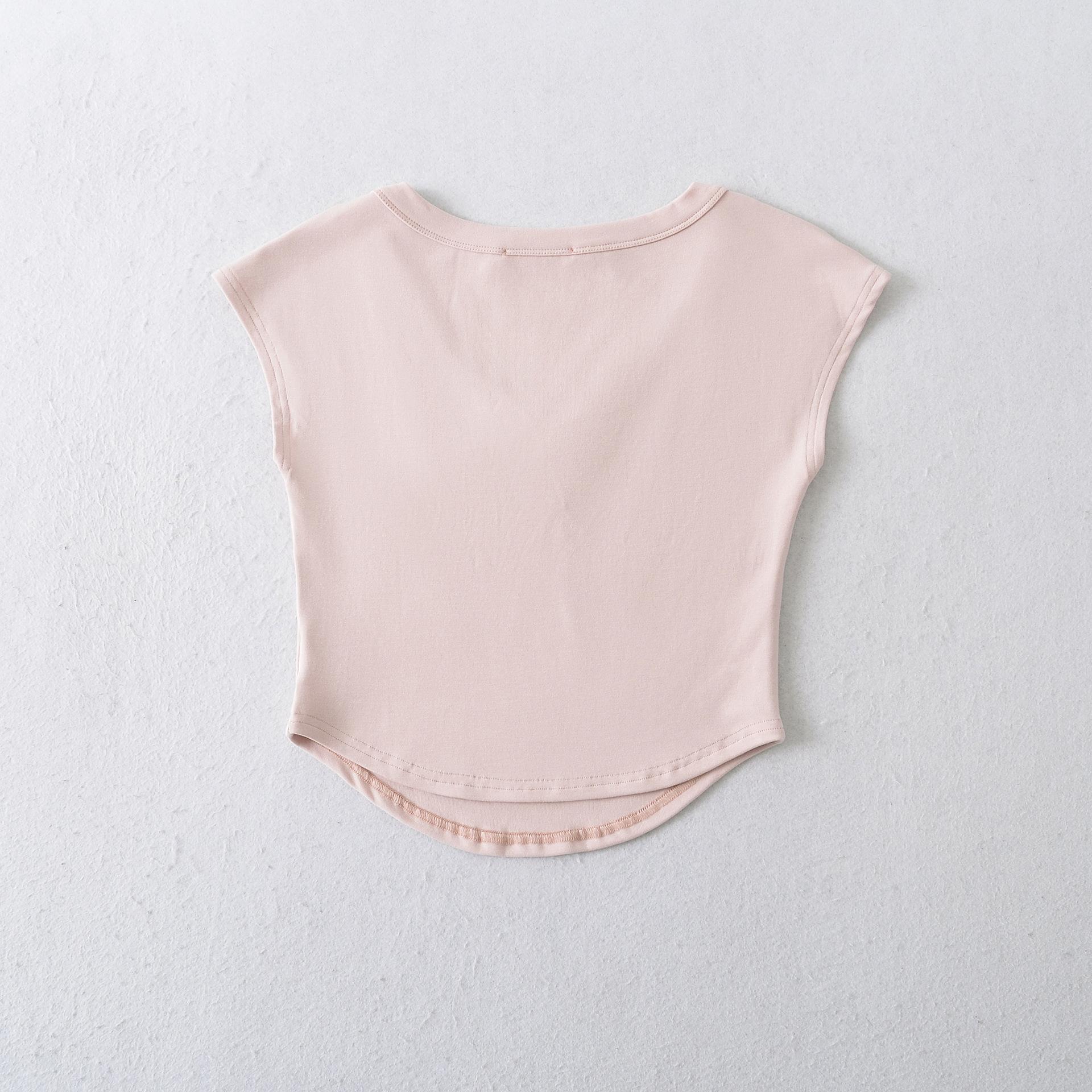 Compre 1595-2025 Novo Estilo Puro Desejo Versátil Casual Top Decote V para Mulheres, Ajuste Slim Sexy Emagrecedor Camiseta Manga Curta no atacado no Joom.pro