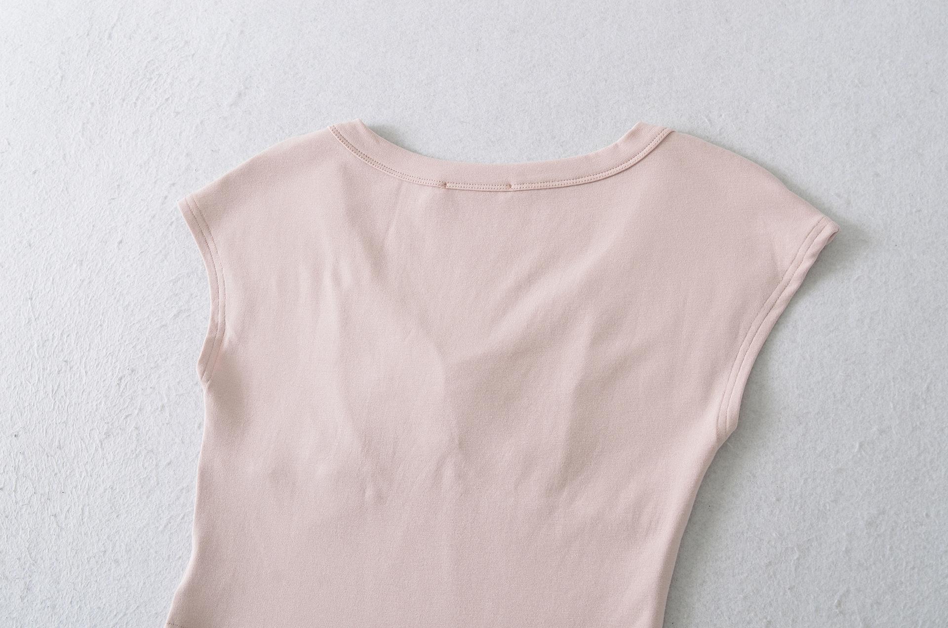 1595-2025 Novo Estilo Puro Desejo Versátil Casual Top Decote V para Mulheres, Ajuste Slim Sexy Emagrecedor Camiseta Manga Curta