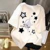 Camiseta Preguiçosa de Algodão Puro de Manga Curta Feminina plus size Pulôver Estampada Manga Curta Camiseta Coreana Casual Doce Cool Top