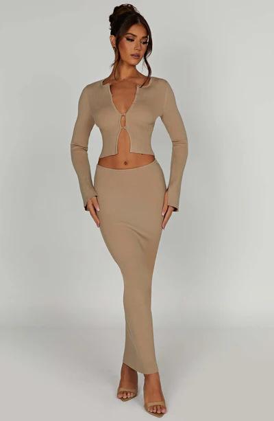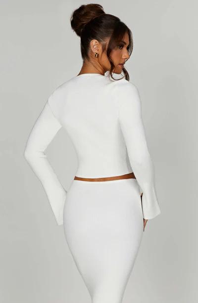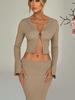 Outono Europeu e Americano Transfronteiriço 2024 Novo Top Cardigã Vazado de Manga Curta Longa Terno Saia Fenda Mulher