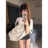 Street Style Preto e Branco Estampado Manga Curta Tops Algodão Puro Camiseta de Manga Curta Camiseta Feminina Estilo Esportivo Pulôver Estilo Hong Kong